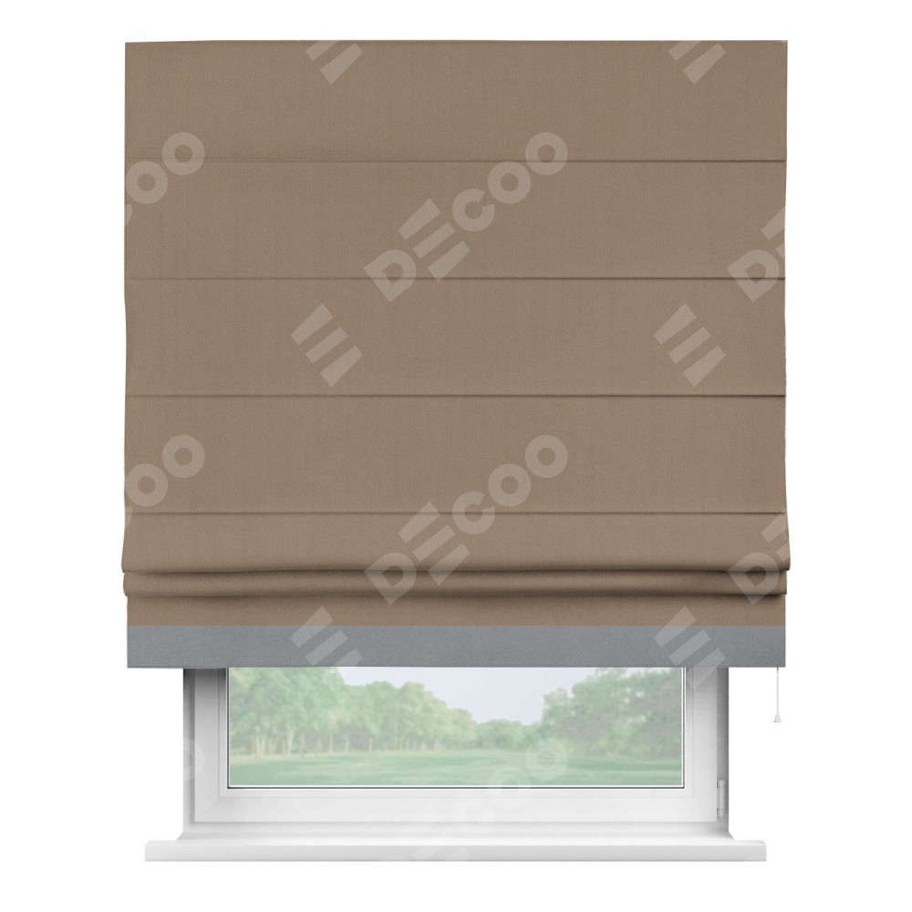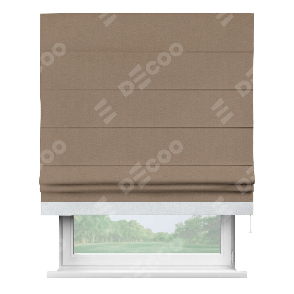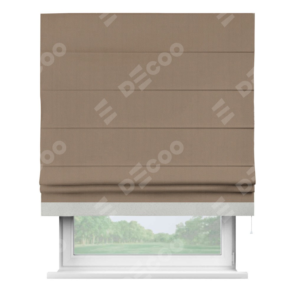 Римская штора «Cortin» для проёма, ткань блэкаут однотонный кофейно-бежевый с кантом Джестер