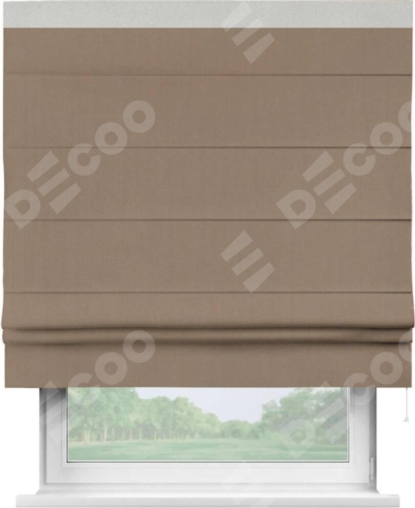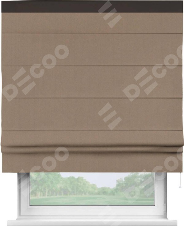 Римская штора «Cortin» для проёма, ткань блэкаут однотонный кофейно-бежевый с кантом Кинг