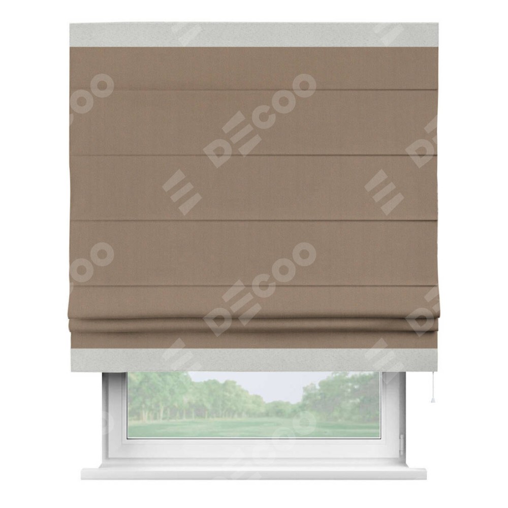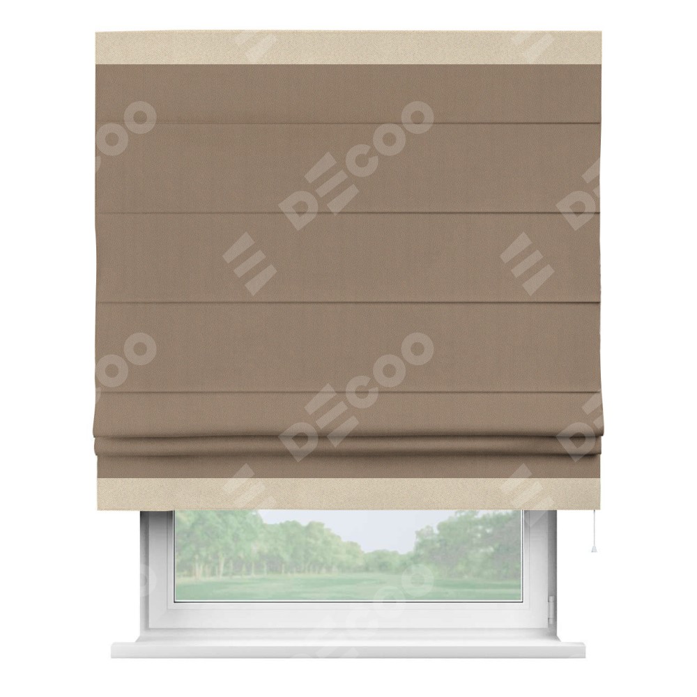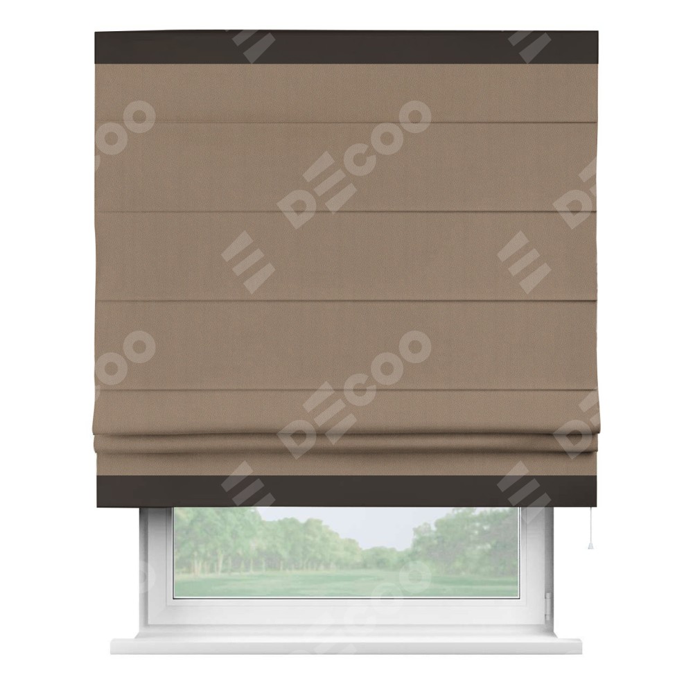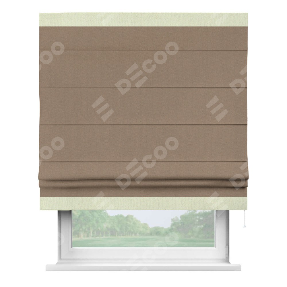 Римская штора «Cortin» для проёма, ткань блэкаут однотонный кофейно-бежевый с кантом Горизонт