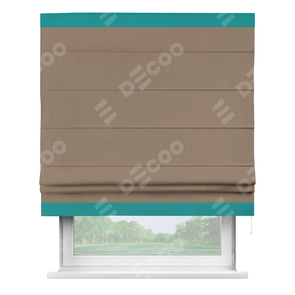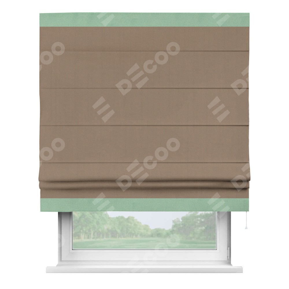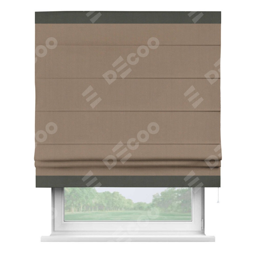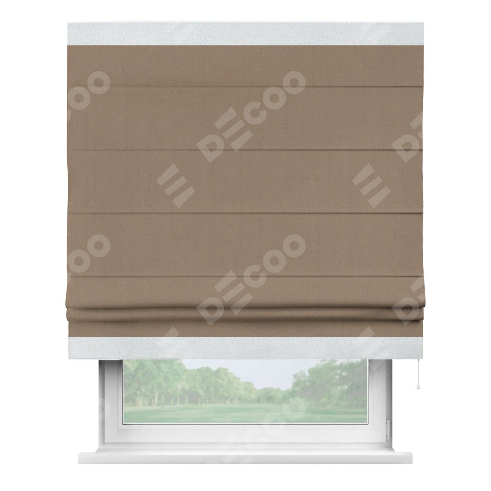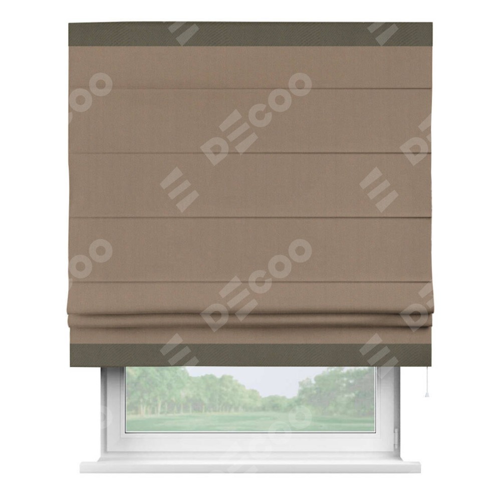 Римская штора «Cortin» для проёма, ткань блэкаут однотонный кофейно-бежевый с кантом Горизонт