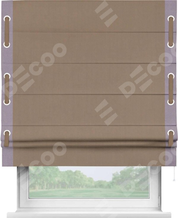 Римская штора «Cortin» для проёма, ткань блэкаут однотонный кофейно-бежевый с кантом Стрим Дуо (люверсы с пояском)