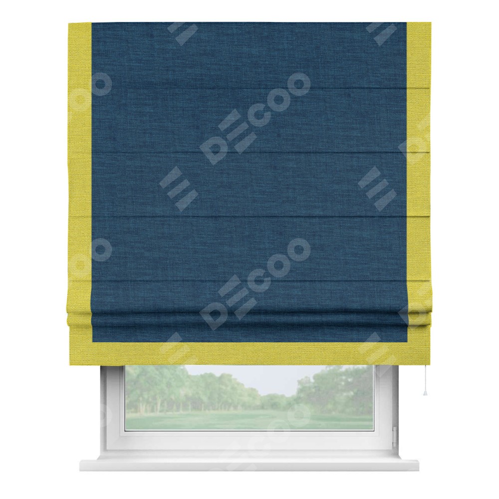 Римская штора «Кортин» для проёма, лён синий, с кантом Виктория