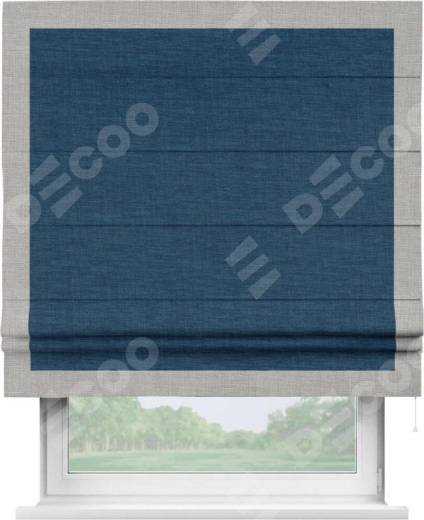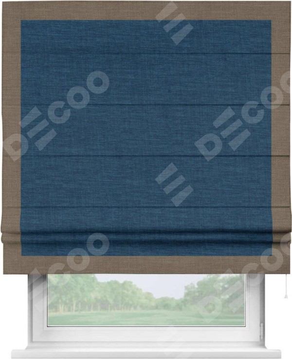 Римская штора «Кортин» для проёма, лён синий, с кантом Чесс