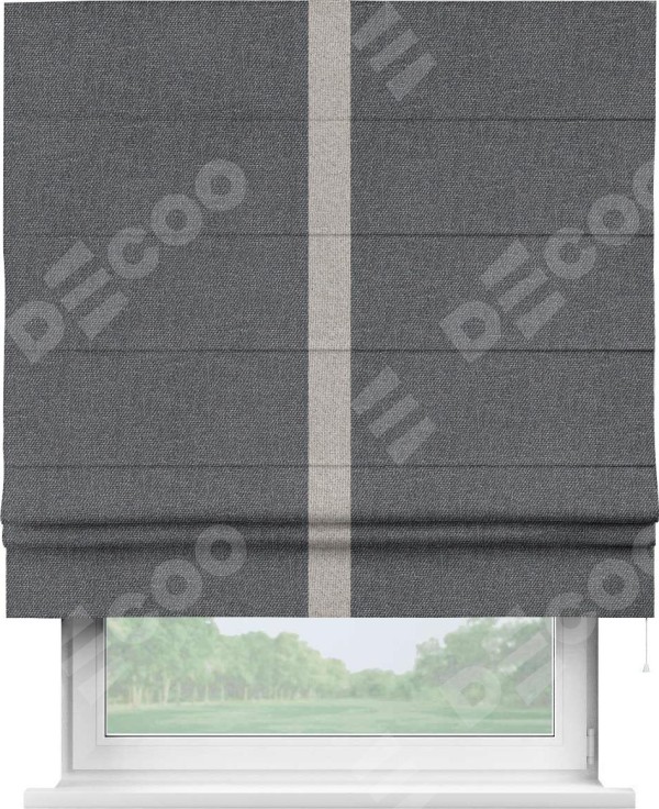 Римская штора «Кортин» для проёма, лён димаут графит с кантом Хайвэй