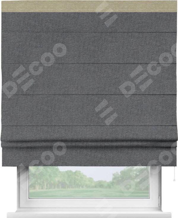 Римская штора «Кортин» для проёма, лён димаут графит с кантом Кинг