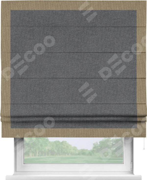 Римская штора «Кортин» для проёма, лён димаут графит с кантом Чесс