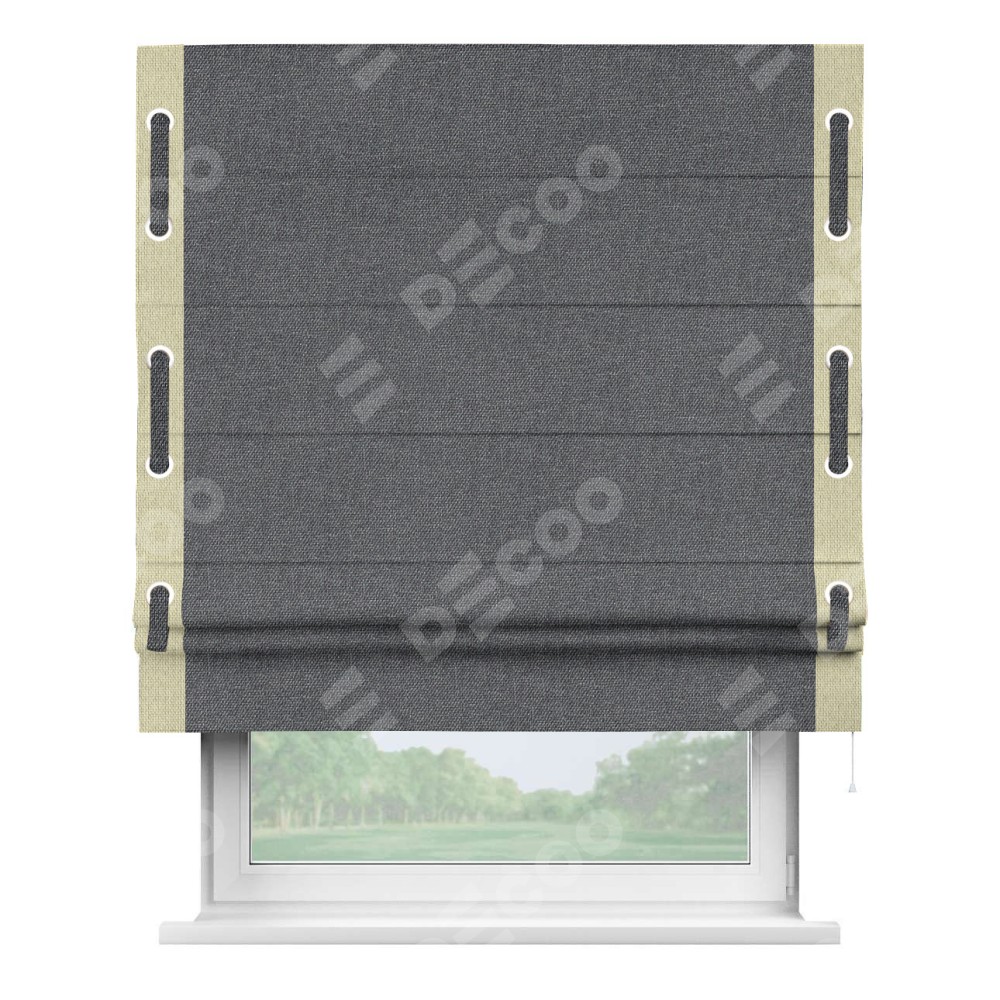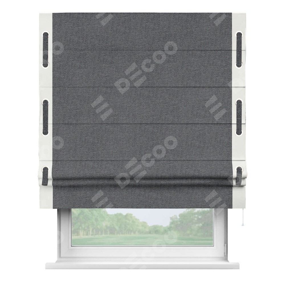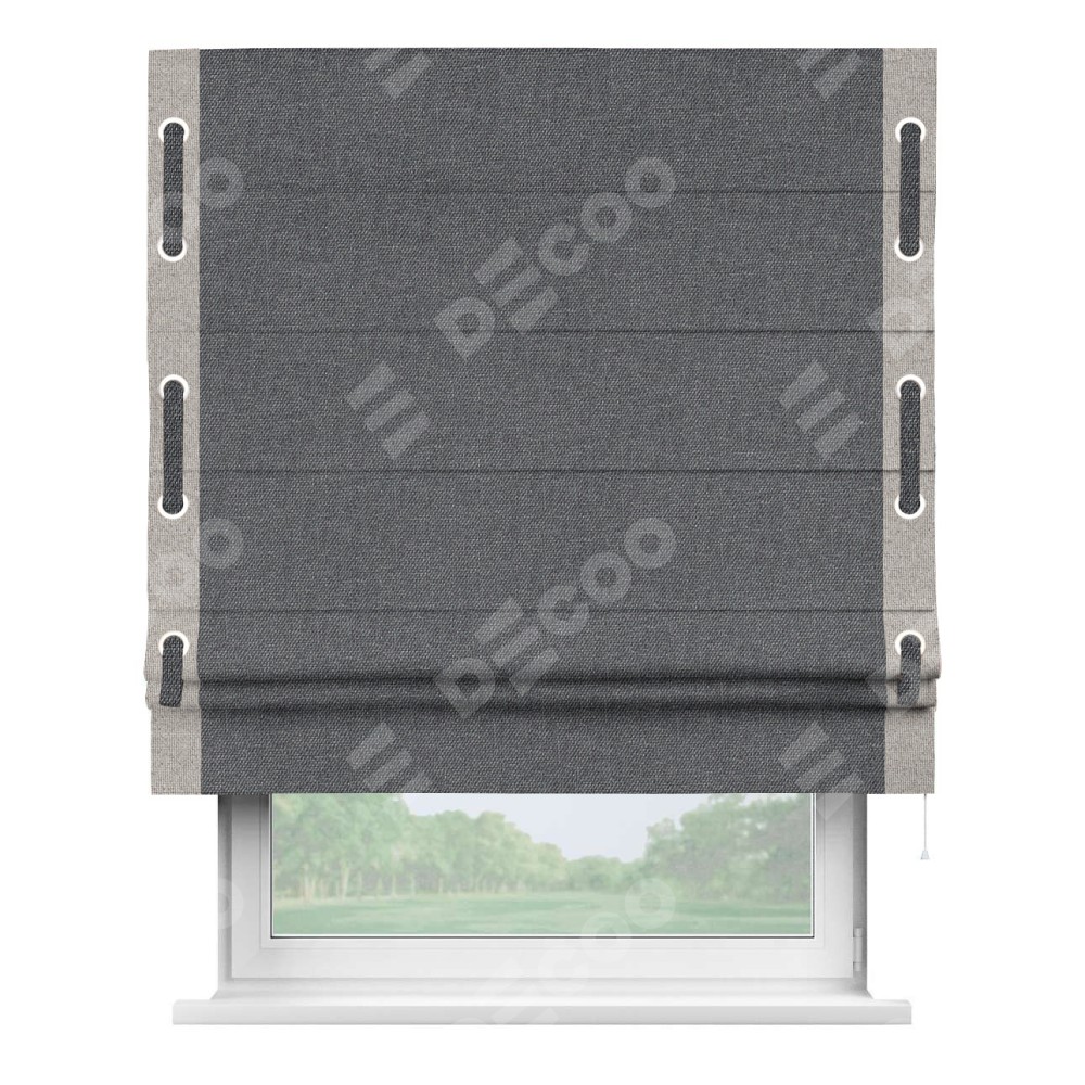 Классическая римская штора производителя «Cortin», пошита из ткани лён димаут графит, артикул: 140644. Имеет универсальный механизм и подходит для монтажа: на потолок, на стену и в нишу.
