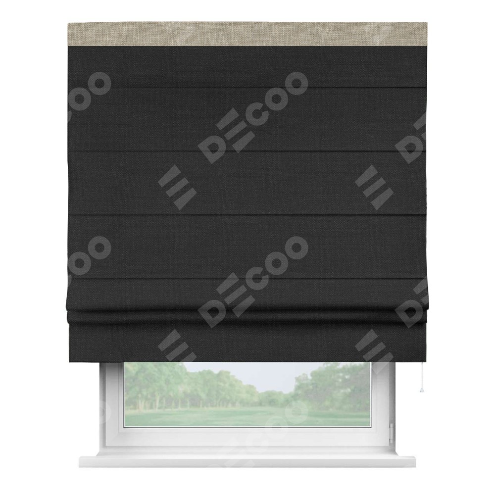 Римская штора «Кортин» для проёма, лён чёрный, с кантом Кинг