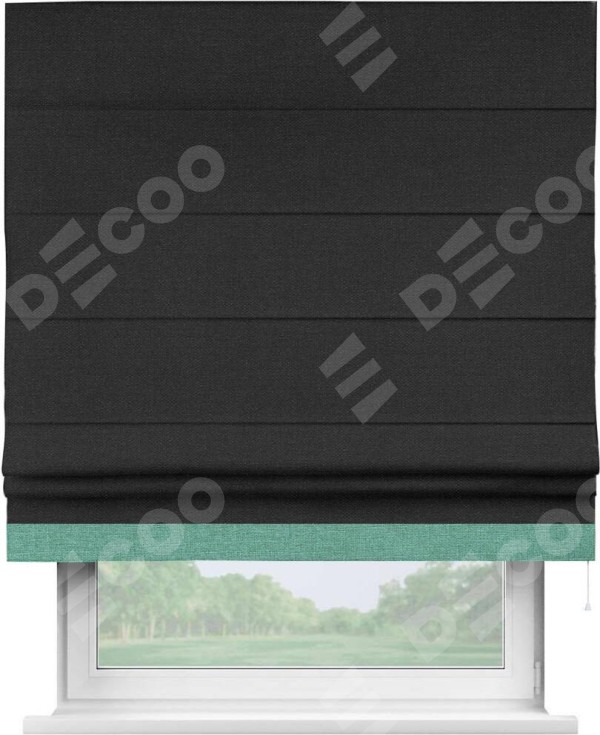 Римская штора «Кортин» для проёма, лён чёрный, с кантом Джестер