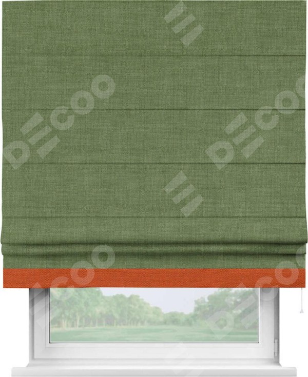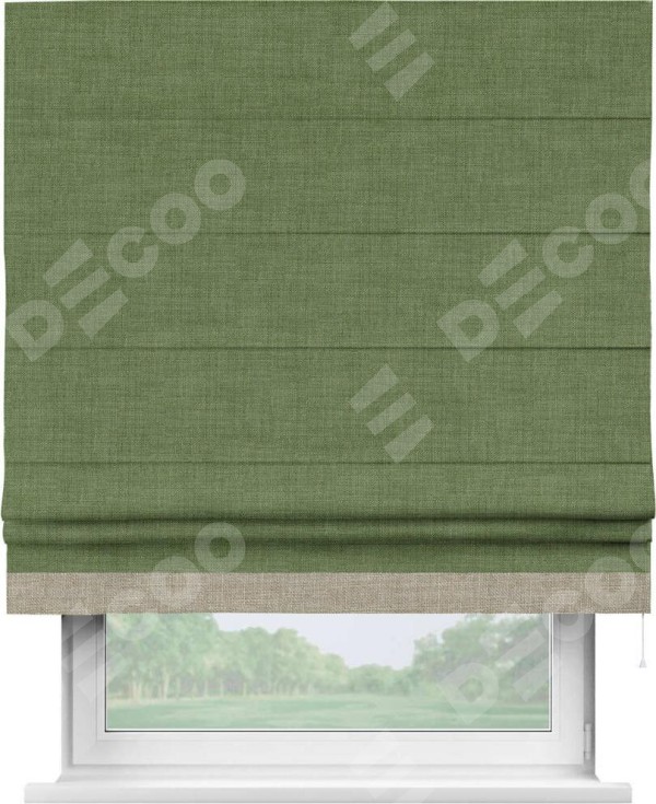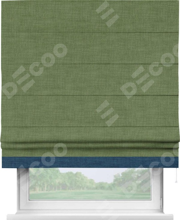 Римская штора «Кортин» для проёма, лён зелёный, с кантом Джестер