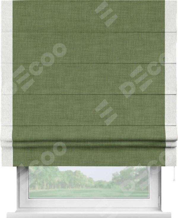 Римская штора «Кортин» для проёма, лён зелёный, с кантом Стрим Дуо