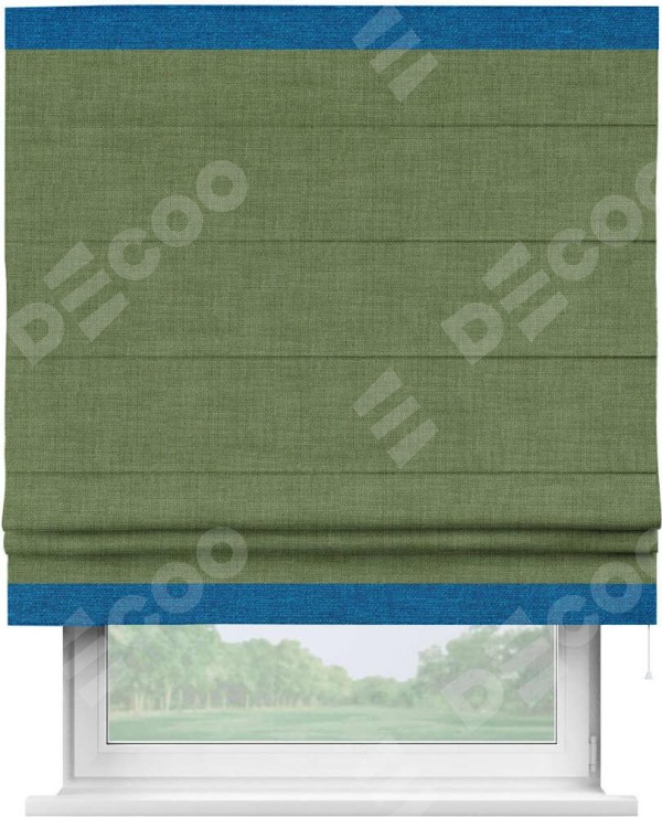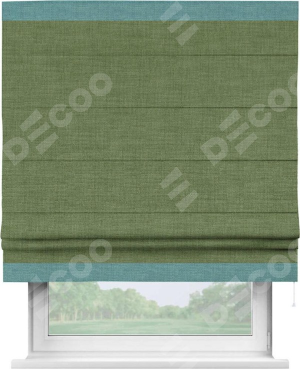 Римская штора «Кортин» для проёма, лён зелёный, с кантом Горизонт