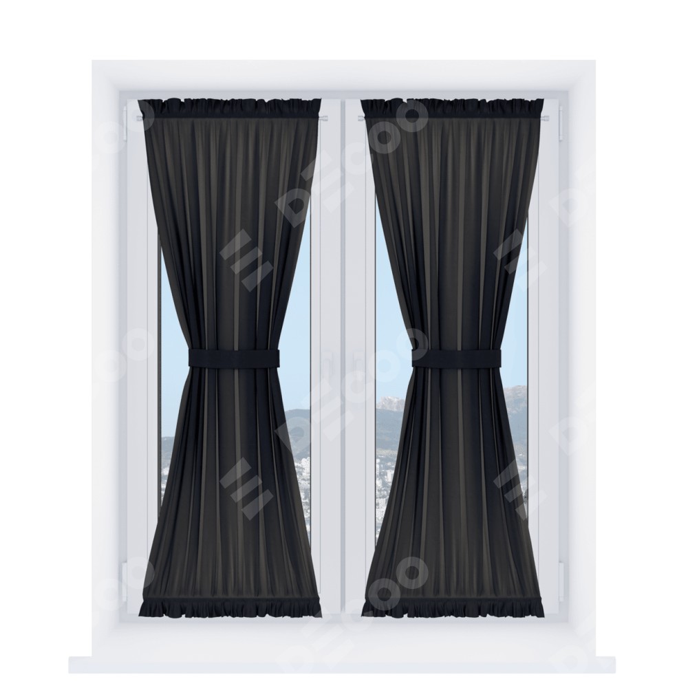 Штора «Песочные часы» производителя «Cortin», используется для створок окон и дверей, пошита из ткани блэкаут однотонный черный, артикул ткани 79904.
