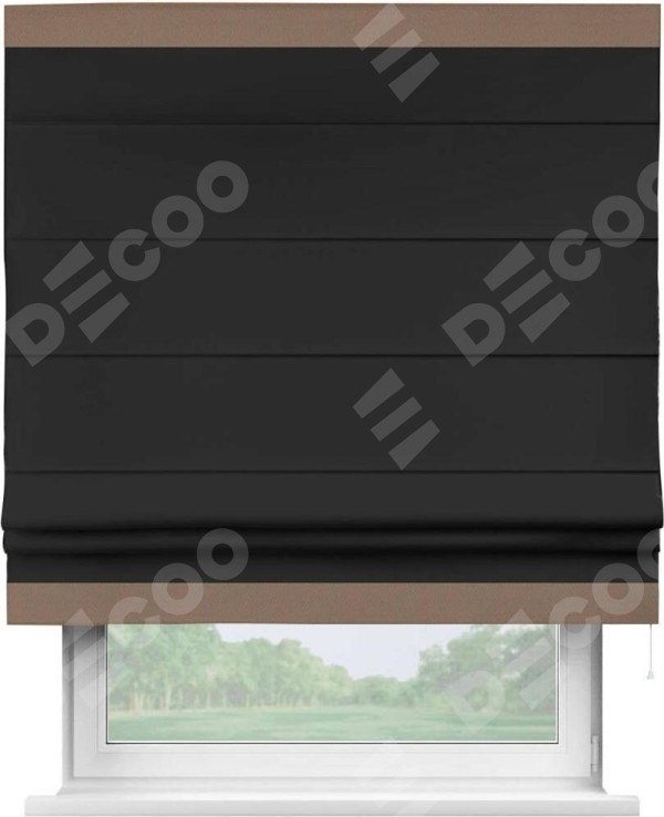 Римская штора «Cortin» для проёма, блэкаут однотонный черный с кантом Горизонт