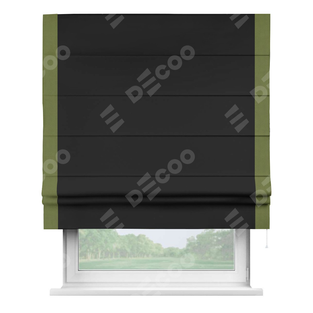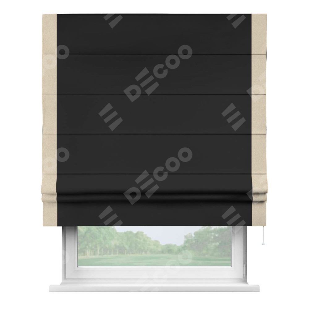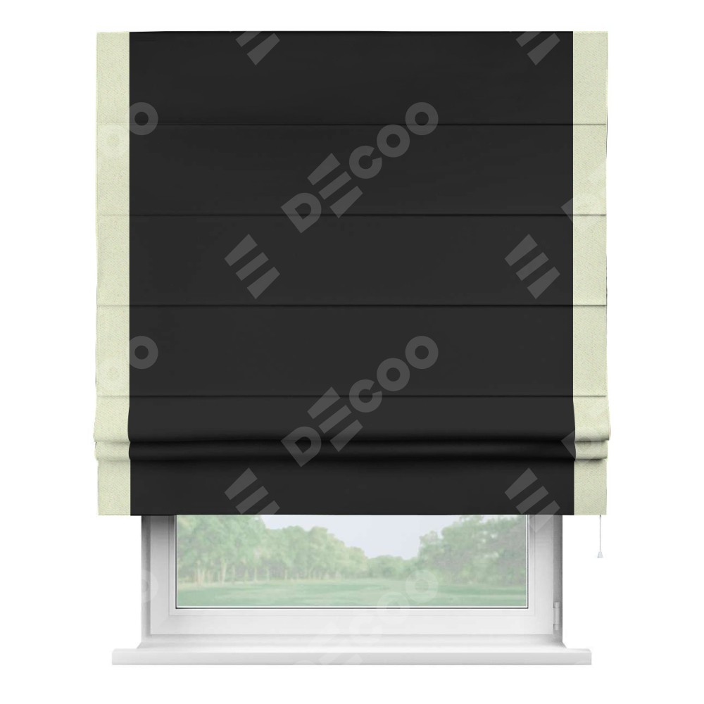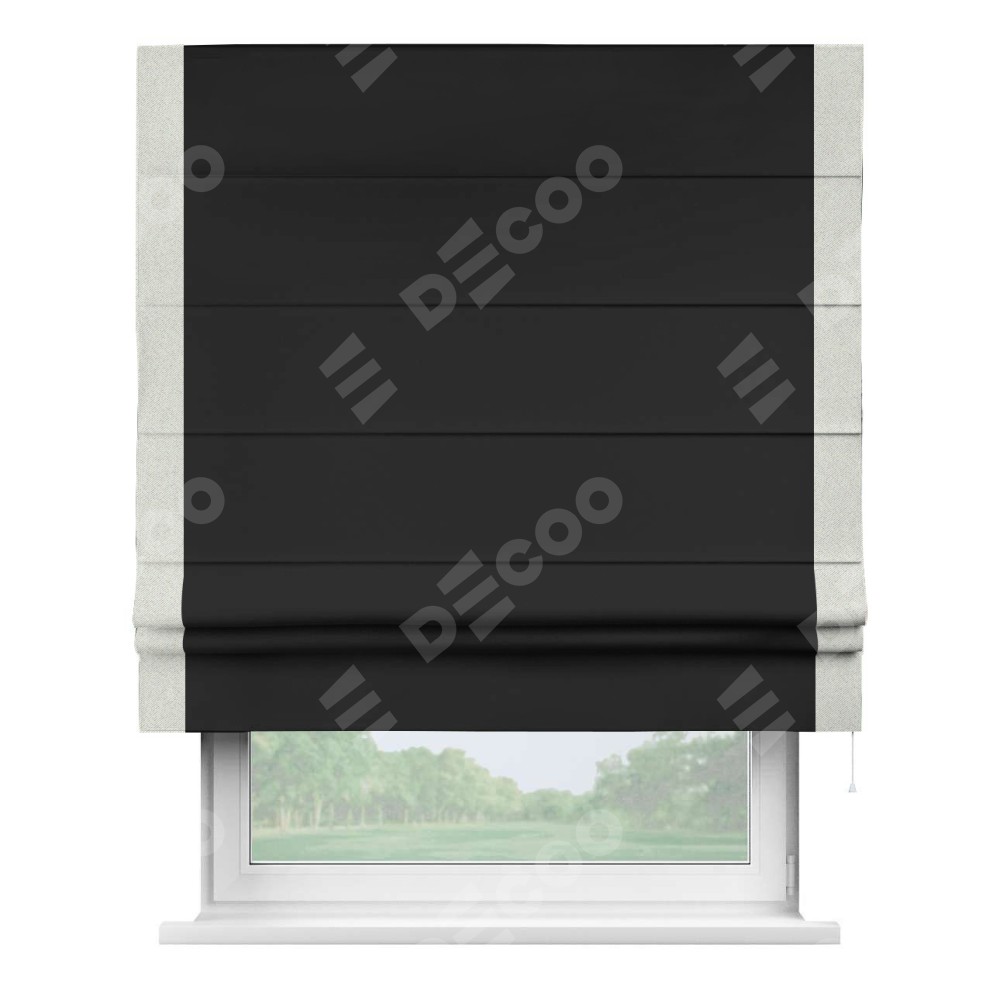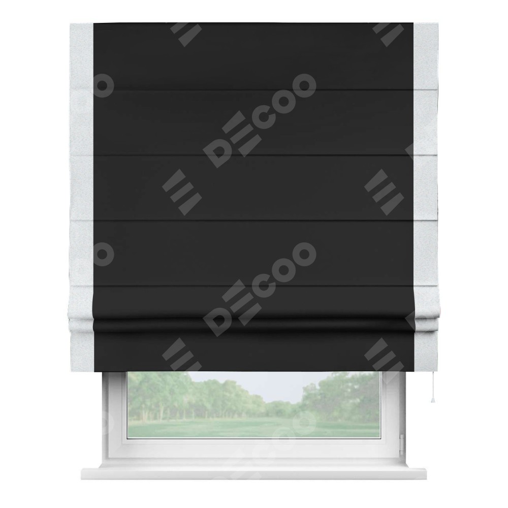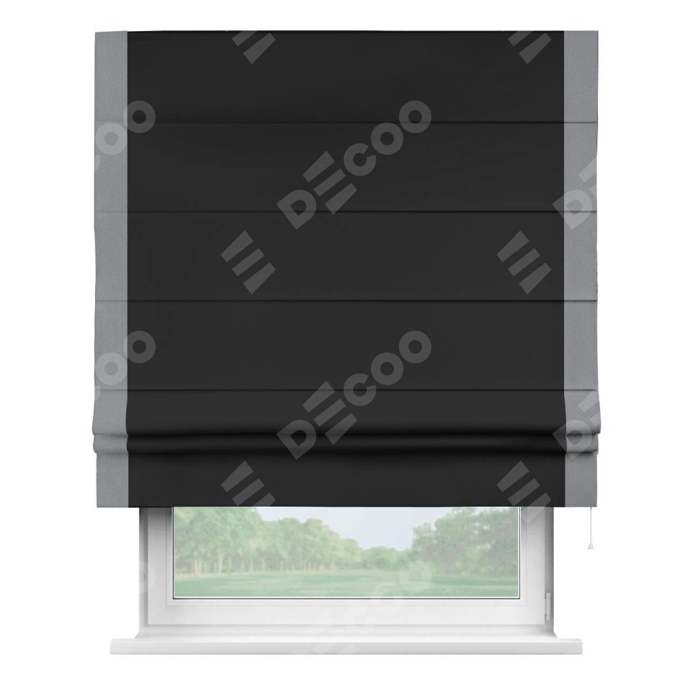 Римская штора «Cortin» для проёма, блэкаут однотонный черный с кантом Стрим Дуо