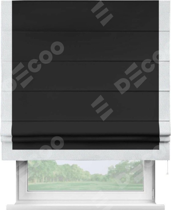 Римская штора «Cortin» для проёма, блэкаут однотонный черный с кантом Виктория