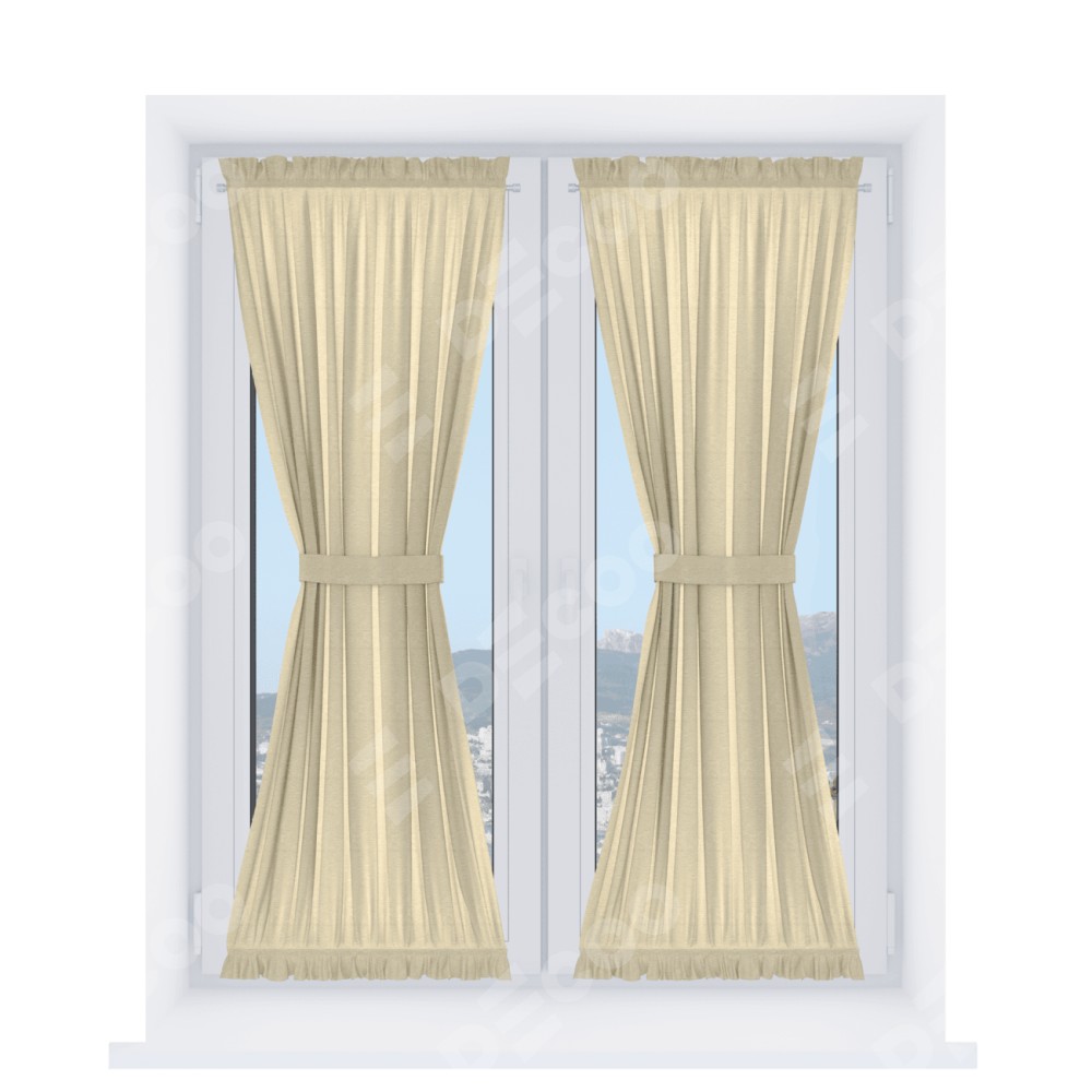 Штора «Песочные часы» производителя «Cortin», используется для створок окон и дверей, пошита из ткани софт однотонный светло-бежевый, артикул ткани 54426.