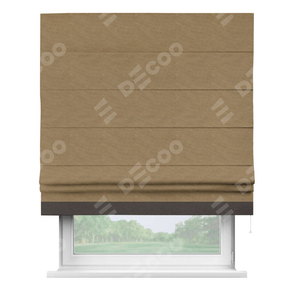 Римская штора «Кортин» с кантом Джестер, для проема, ткань лён димаут, коричневый