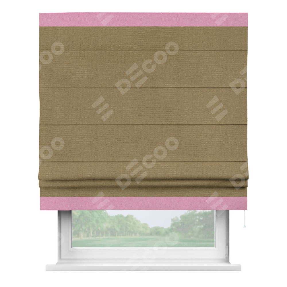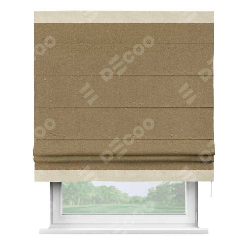 Римская штора «Кортин» с кантом Горизонт, для проема, ткань лён димаут, оливковый