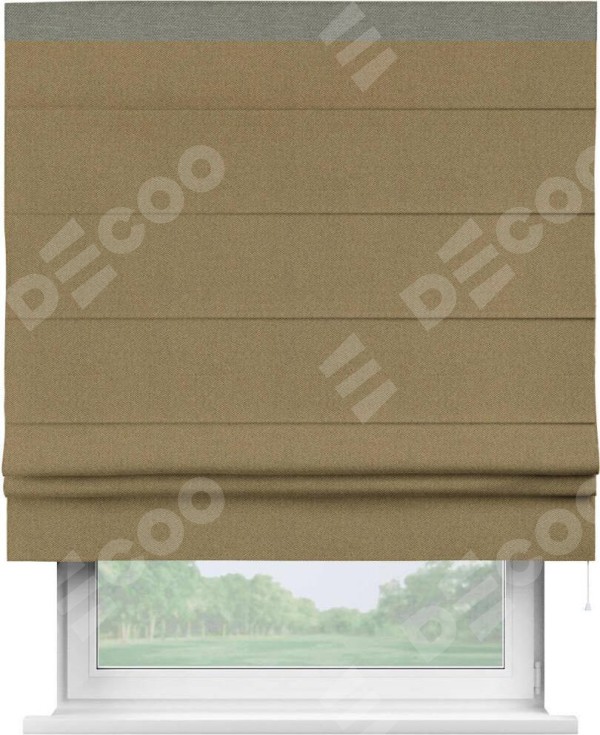 Римская штора «Кортин» с кантом Кинг, для проема, ткань лён димаут, оливковый