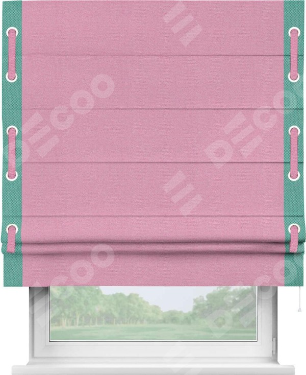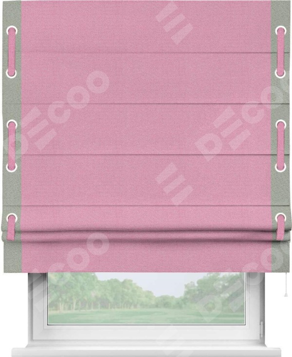 Римская штора «Кортин» с кантом Стрим Дуо (люверсы с пояском), для проема, ткань лён димаут, розовый