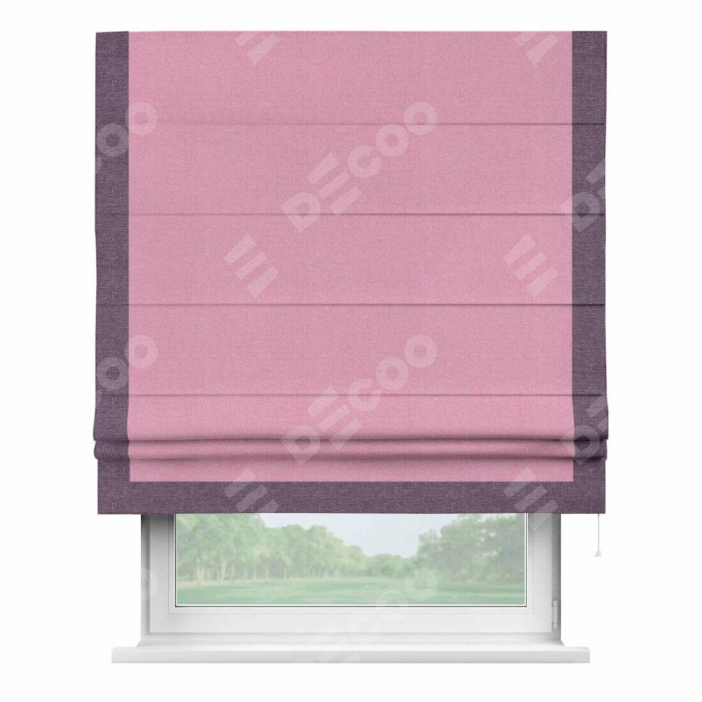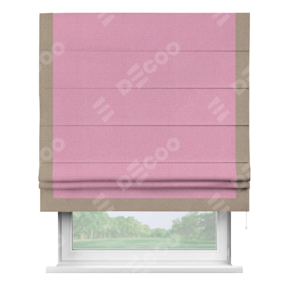 Римская штора «Кортин» с кантом Виктория, для проема, ткань лён димаут, розовый