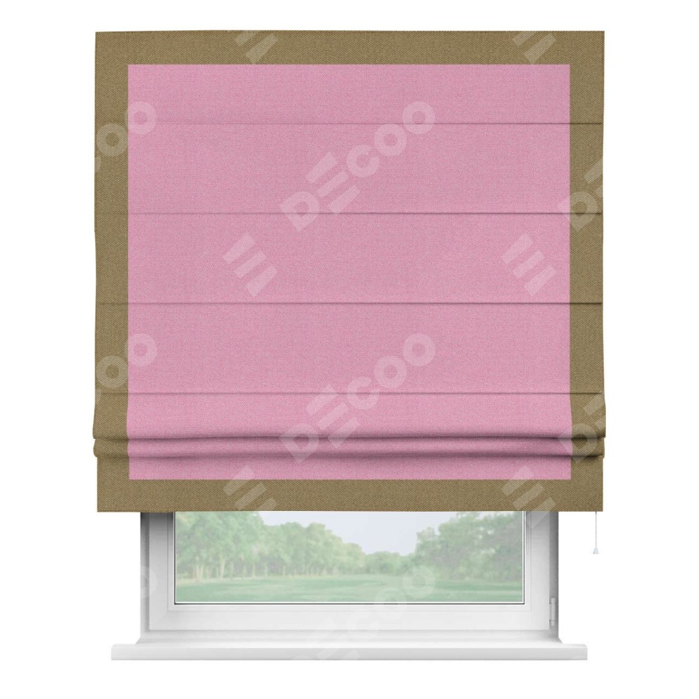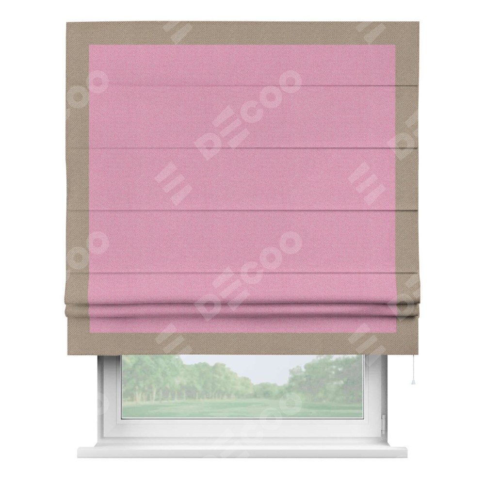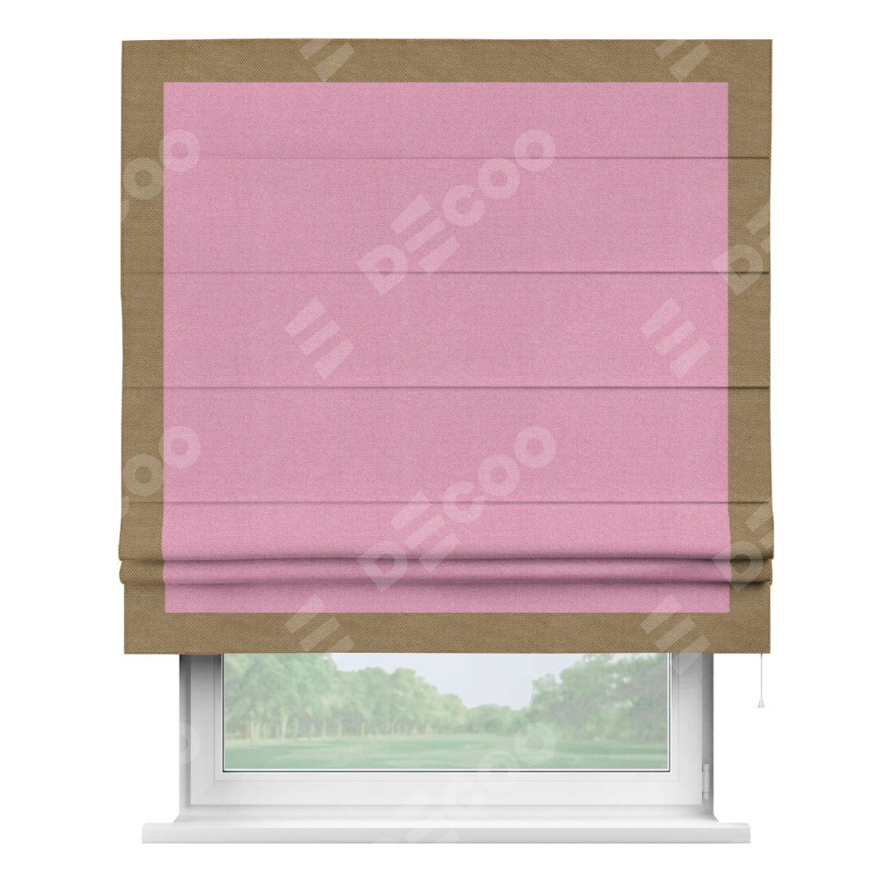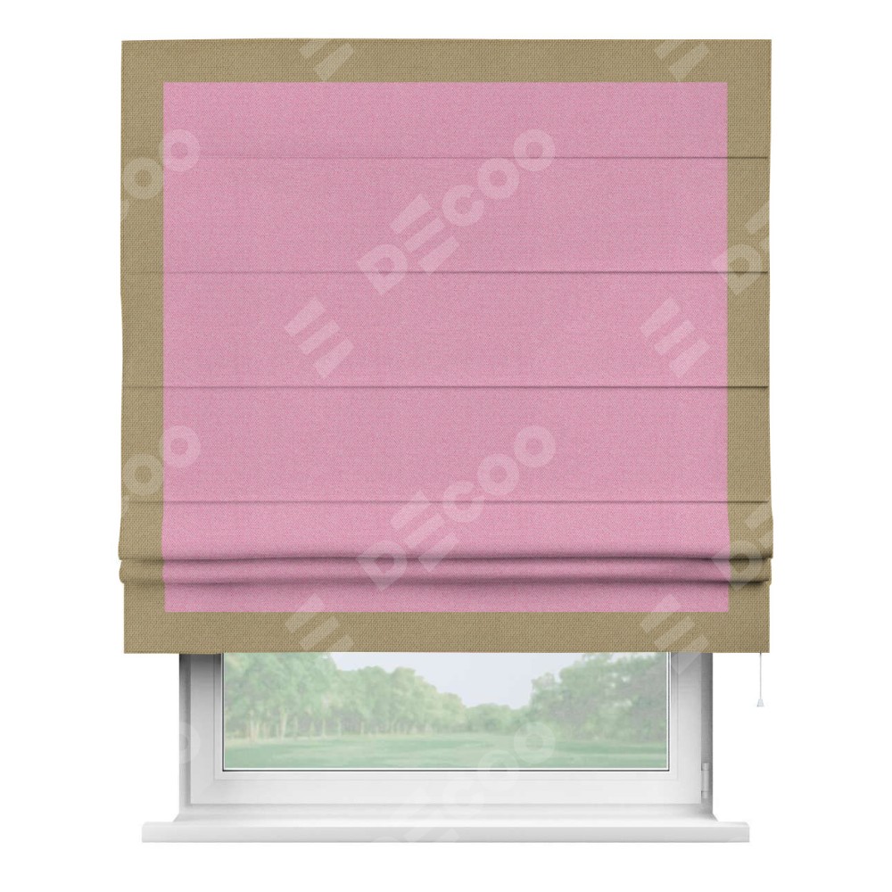 Римская штора «Кортин» с кантом Чесс, для проема, ткань лён димаут, розовый