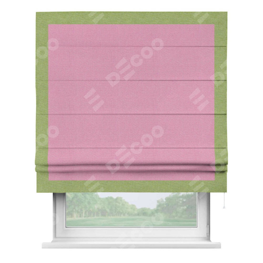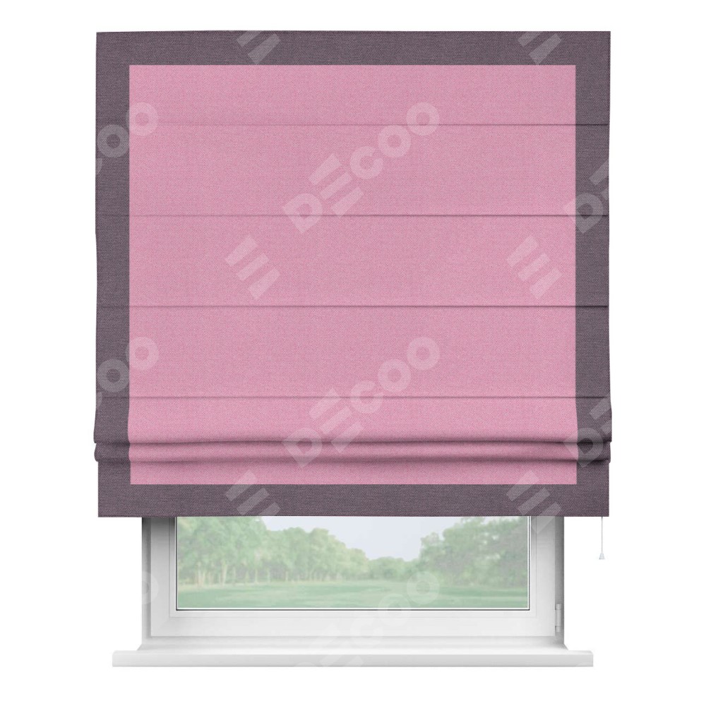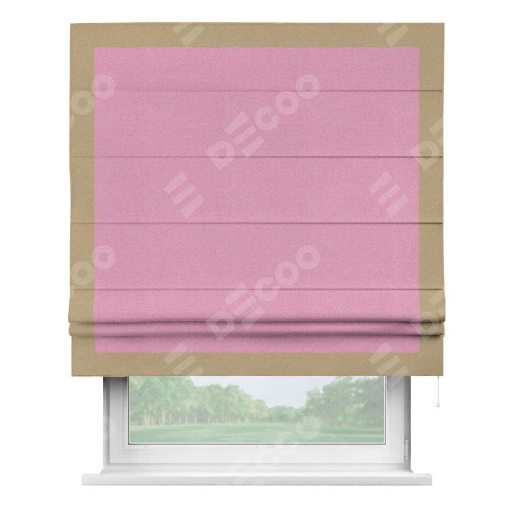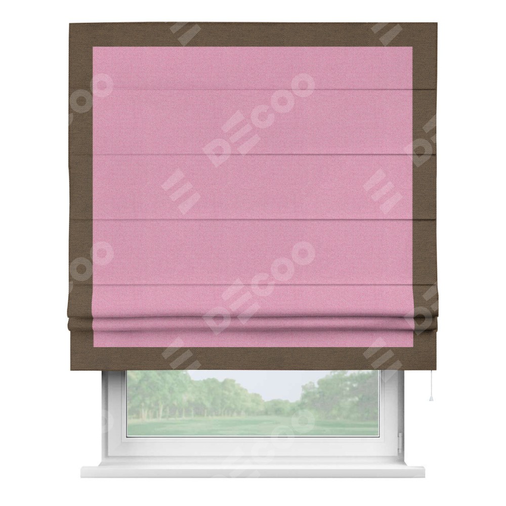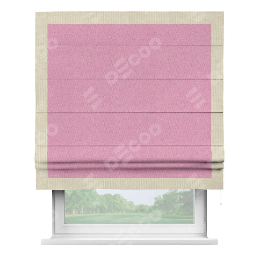 Римская штора «Кортин» с кантом Чесс, для проема, ткань лён димаут, розовый