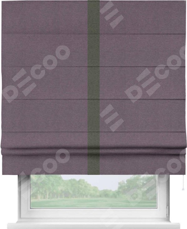 Римская штора производителя «Cortin», используется для проёма, пошита из ткани лён димаут светло-фиолетовый, артикул 83 034. Отделка шторы кантом «Хайвэй», ткань для канта используется из льна димаут разной расцветки на выбор. Имеет универсальный механизм и подходит для монтажа: на потолок, на стену и в нишу.