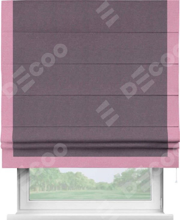 Римская штора «Кортин» с кантом Виктория, для проема, ткань лён димаут, светло-фиолетовый