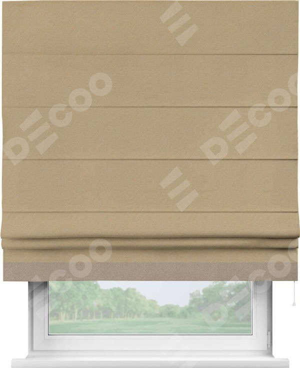 Римская штора «Кортин» с кантом Джестер, для проема, ткань лён димаут, тёмно-бежевый