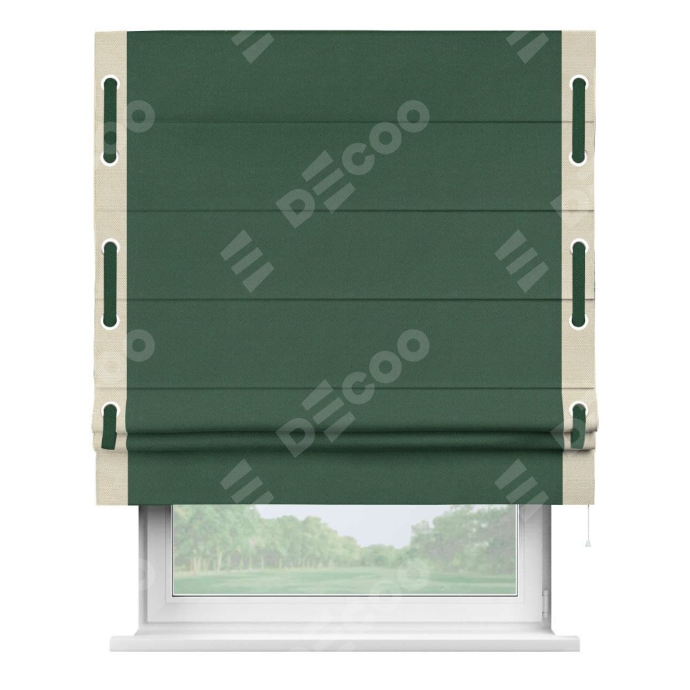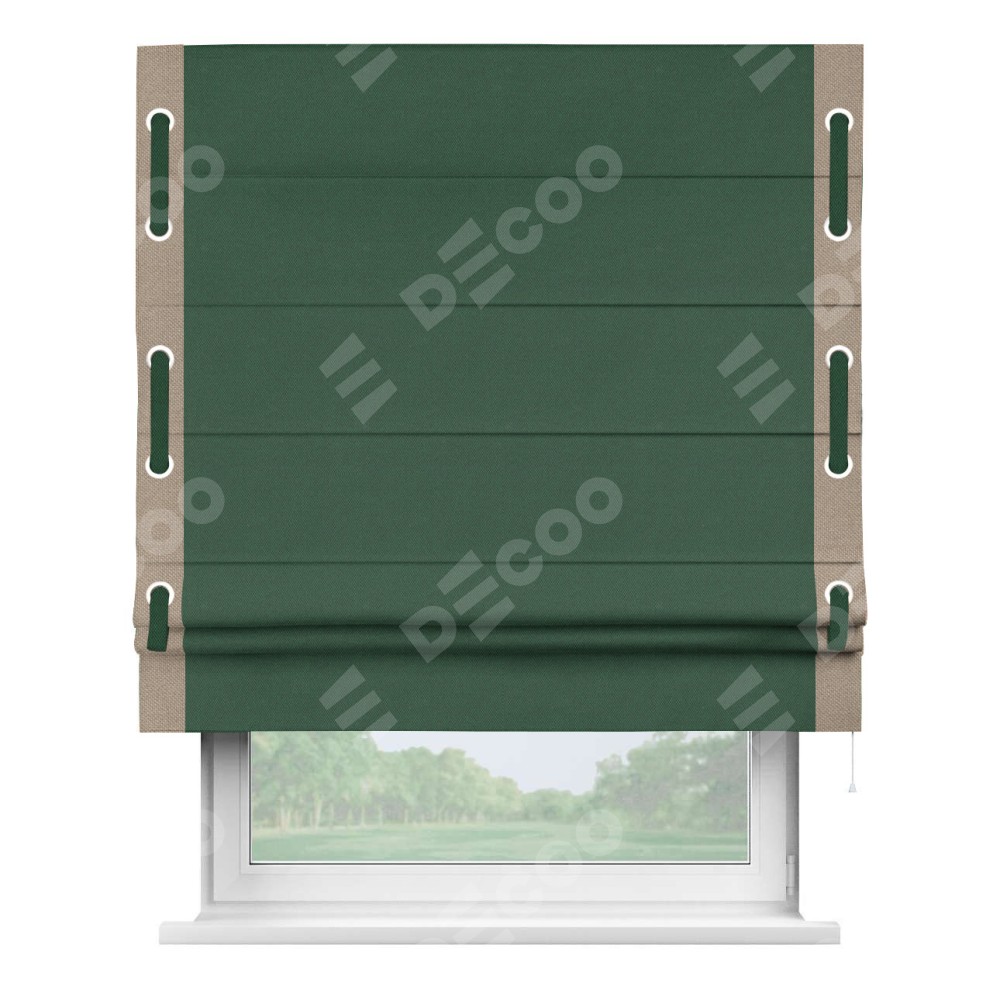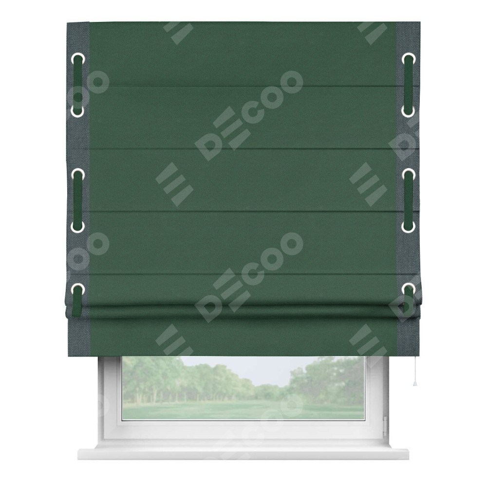 Римская штора «Кортин» с кантом Стрим Дуо (люверсы с пояском), для проема, ткань лён димаут, тёмно-зелёный