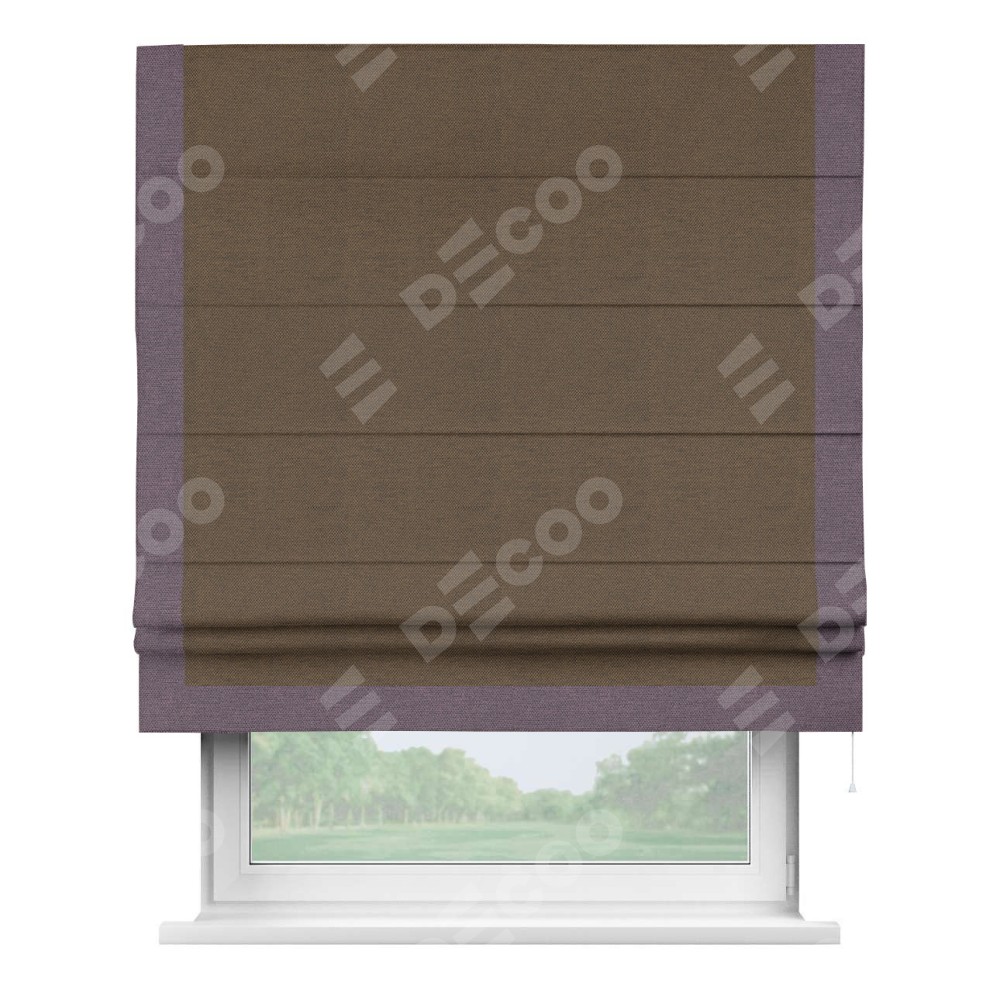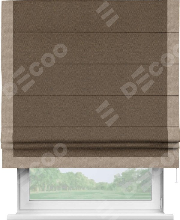 Римская штора «Кортин» с кантом Виктория, для проема, ткань лён димаут, тёмно-коричневый