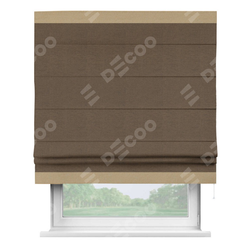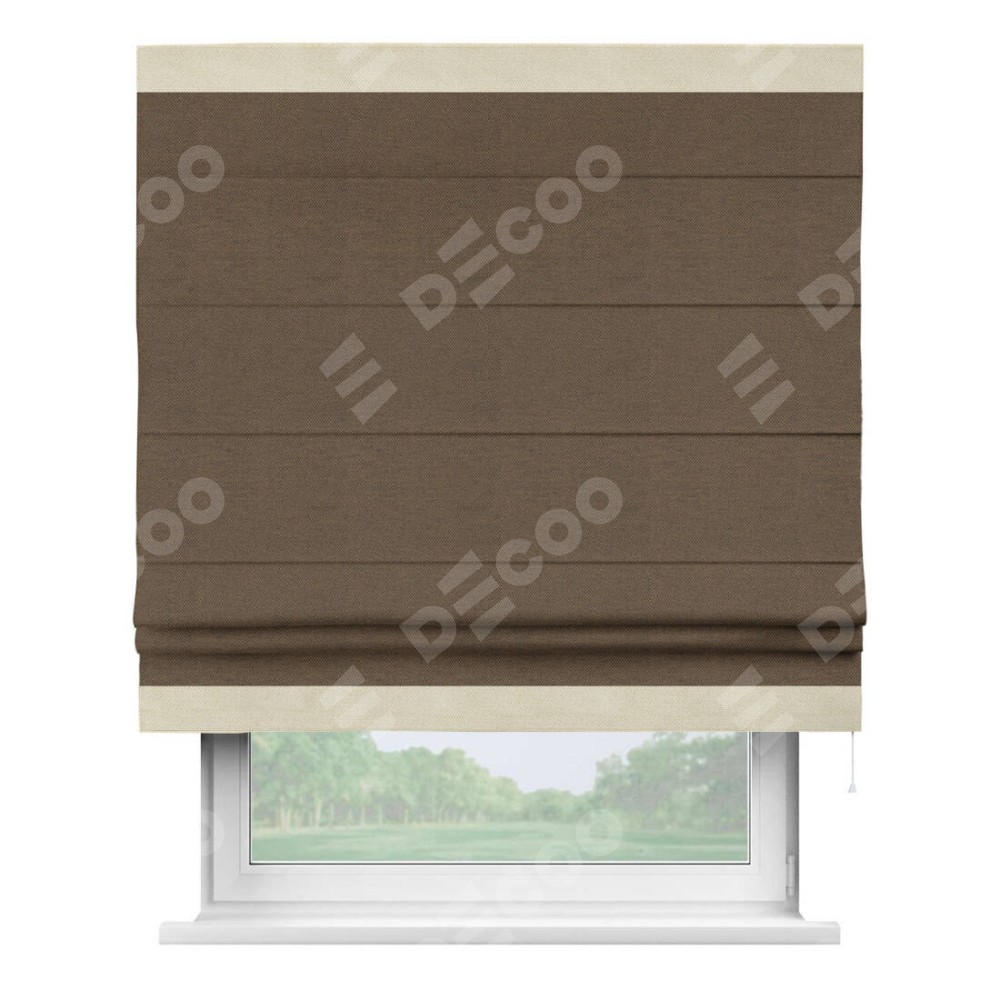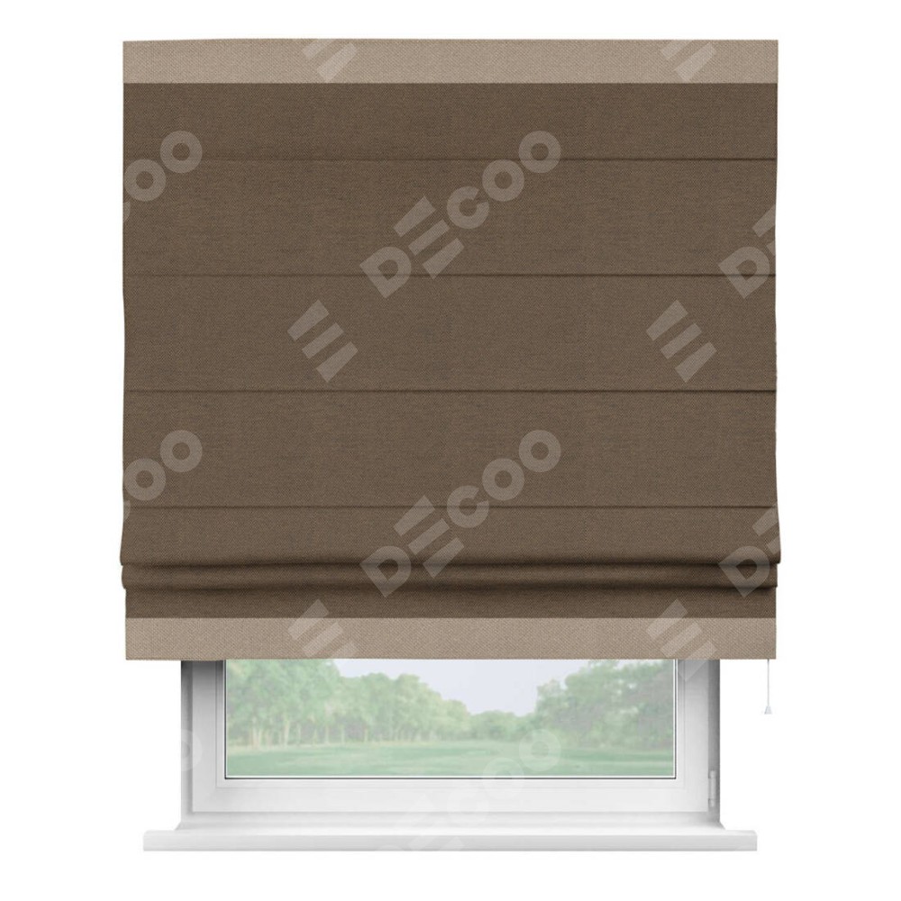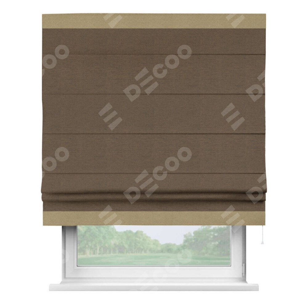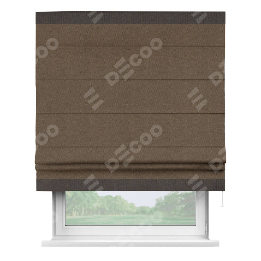 Римская штора «Кортин» с кантом Горизонт, для проема, ткань лён димаут, тёмно-коричневый