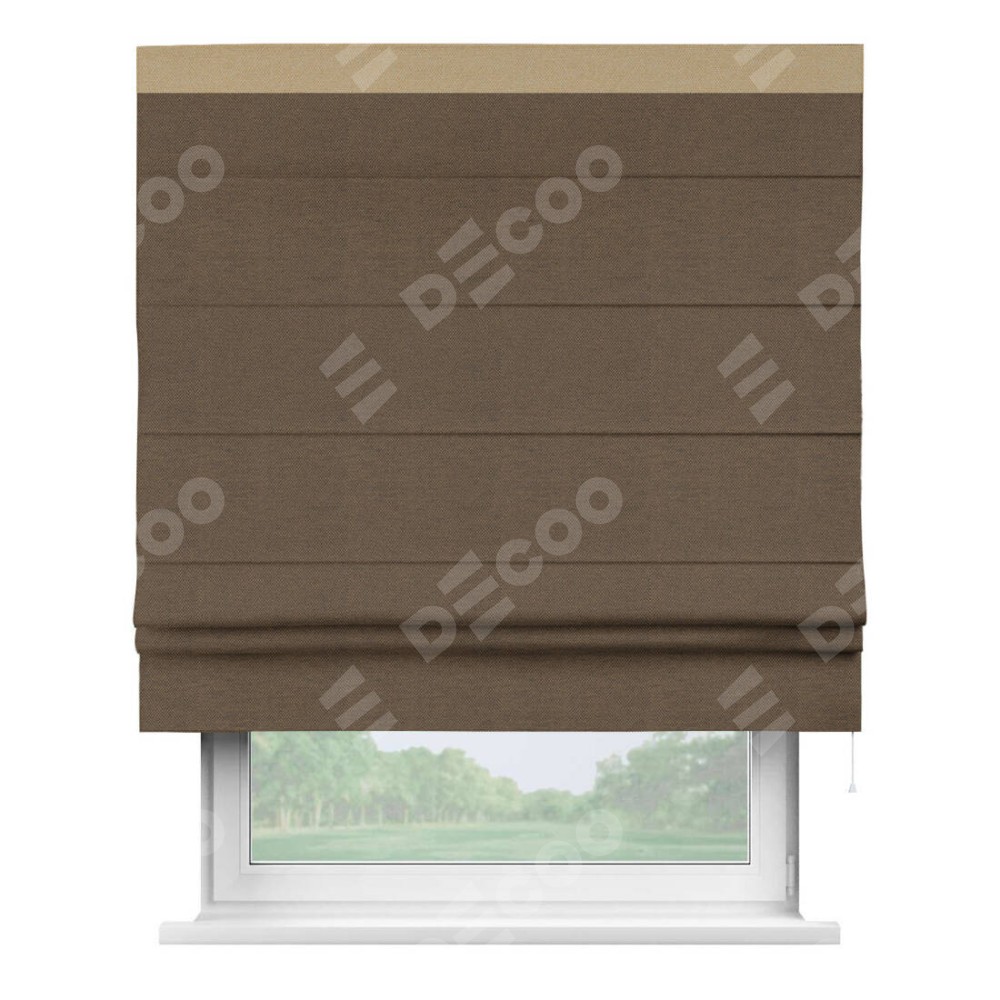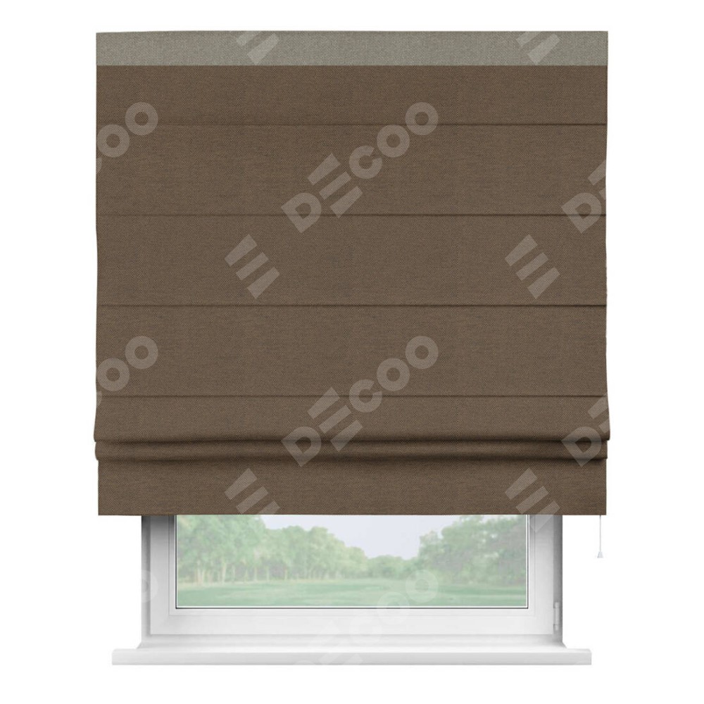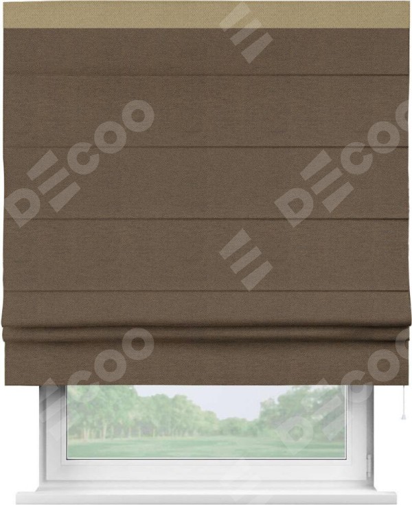 Римская штора «Кортин» с кантом Кинг, для проема, ткань лён димаут, тёмно-коричневый
