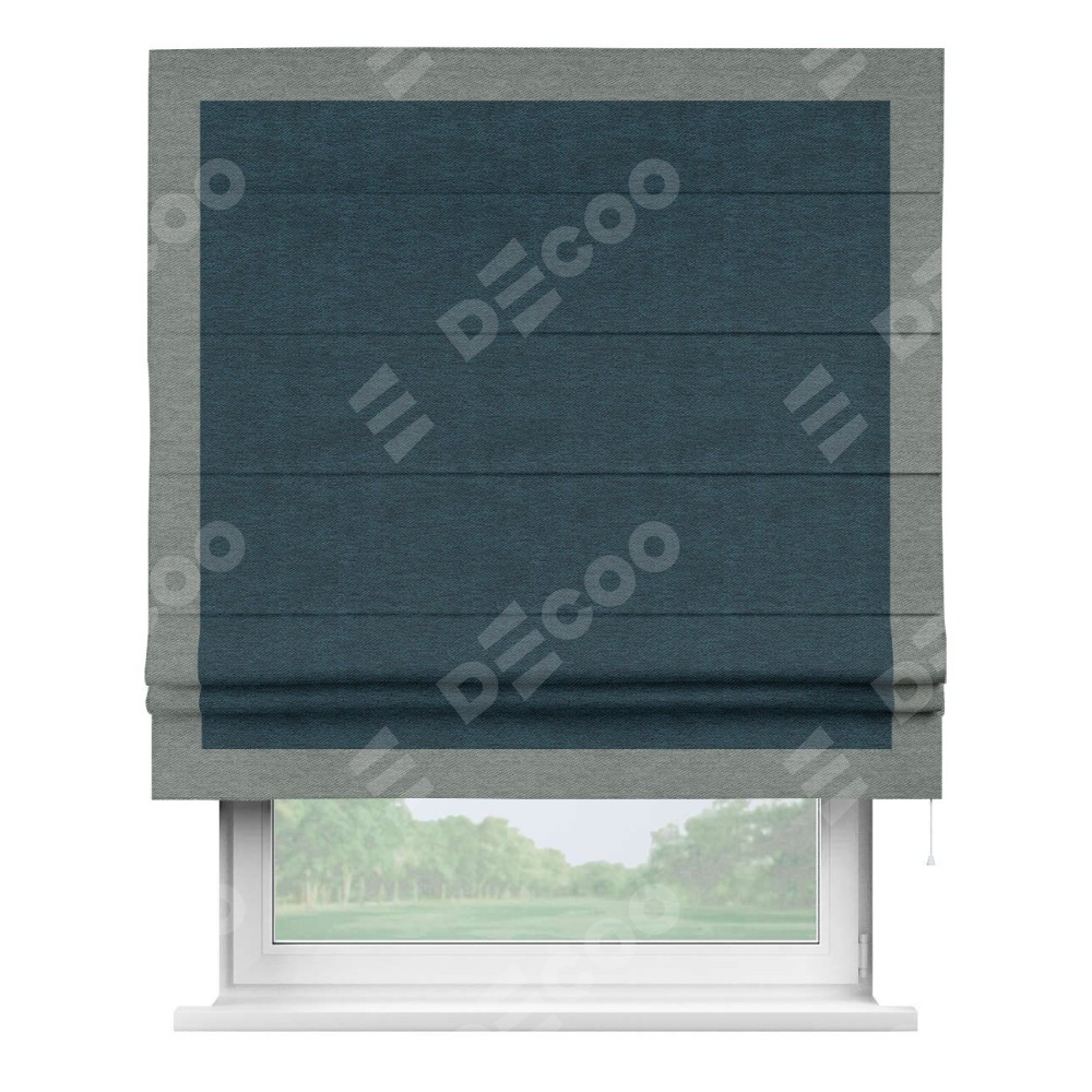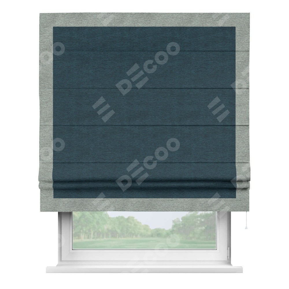 Римская штора производителя «Cortin», используется для проёма, пошита из ткани твид блэкаут глубокий синий, артикул 21590. Отделка шторы кантом «Чесс», ткань для канта используется из твида разной расцветки на выбор. Имеет универсальный механизм и подходит для монтажа: на потолок, на стену и в нишу.