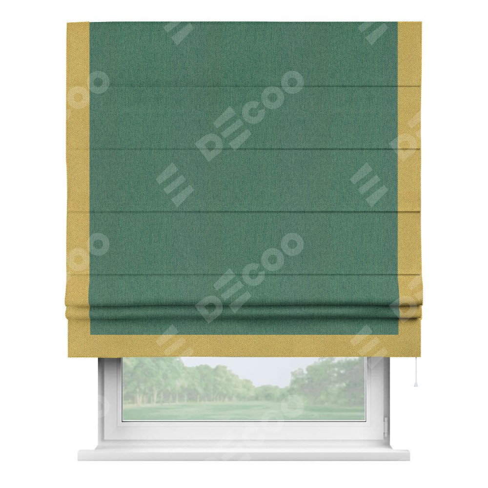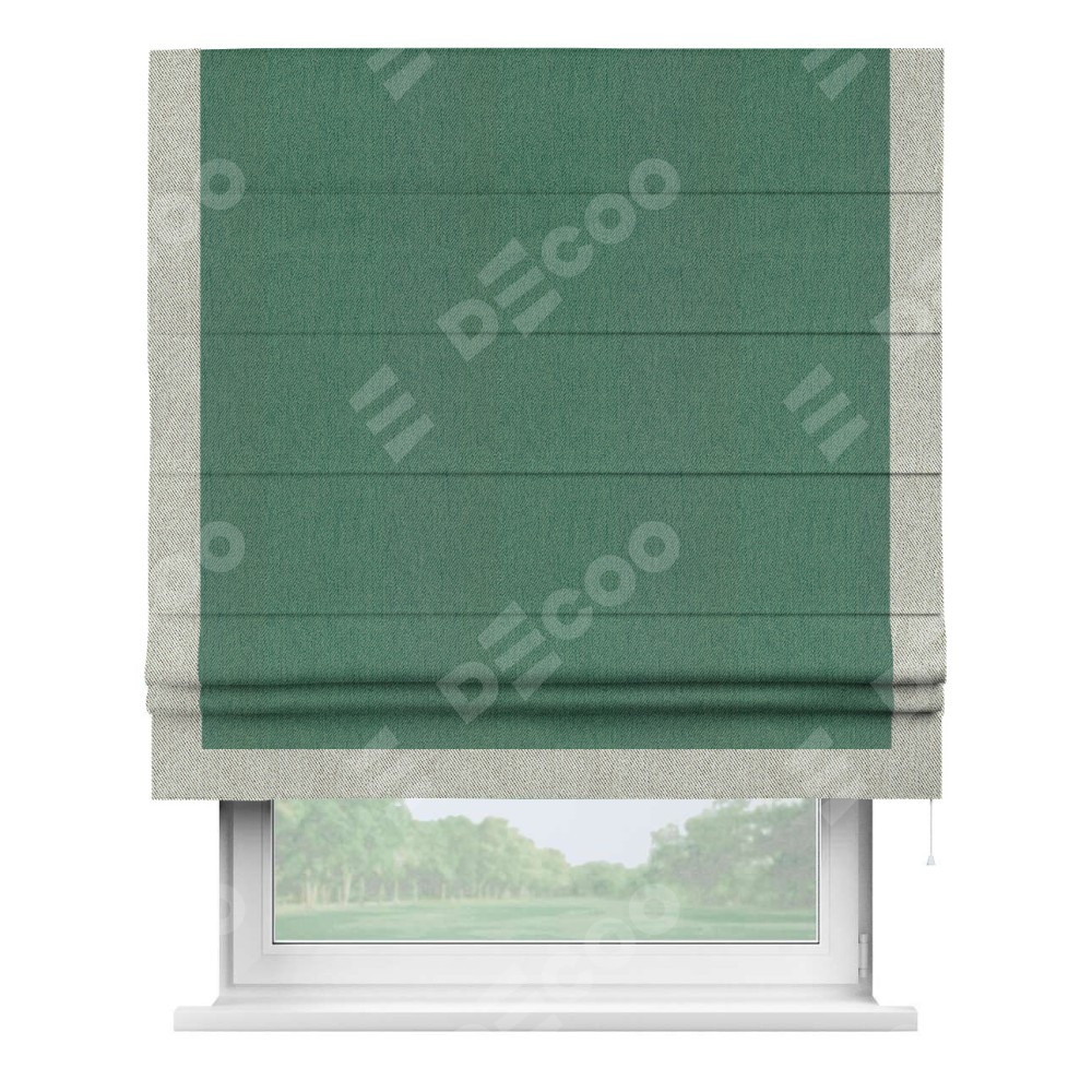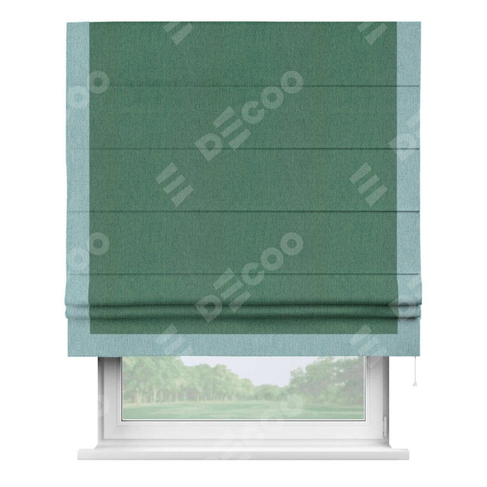 Римская штора «Кортин» с кантом Виктория, для проема, ткань твид блэкаут, зелёный