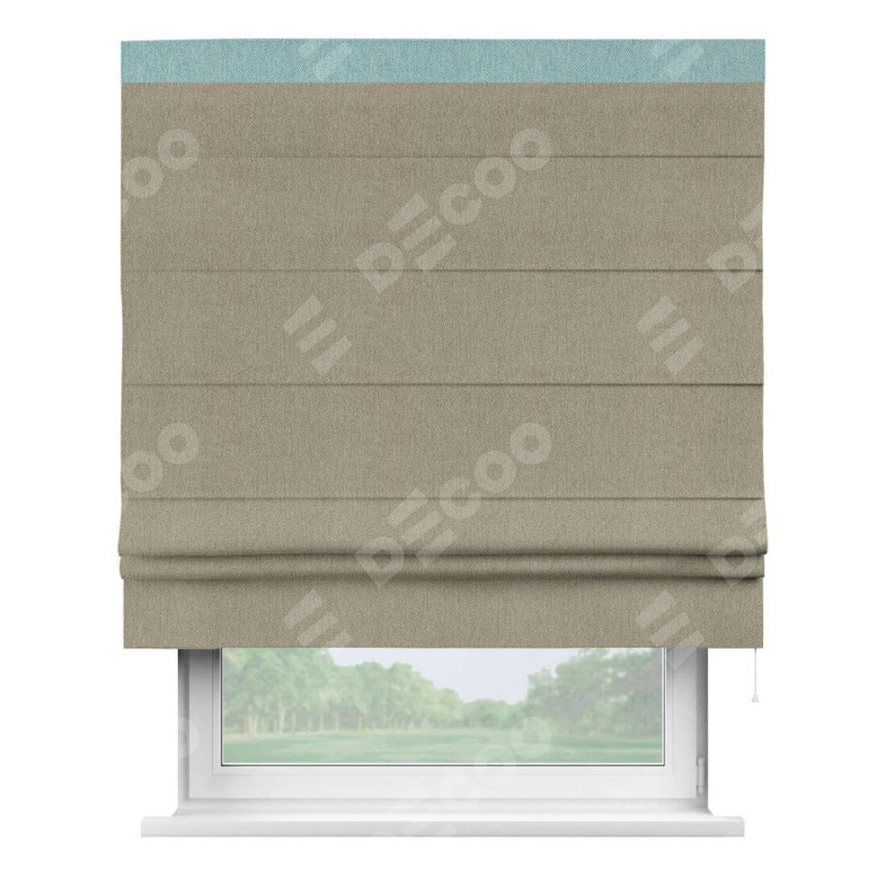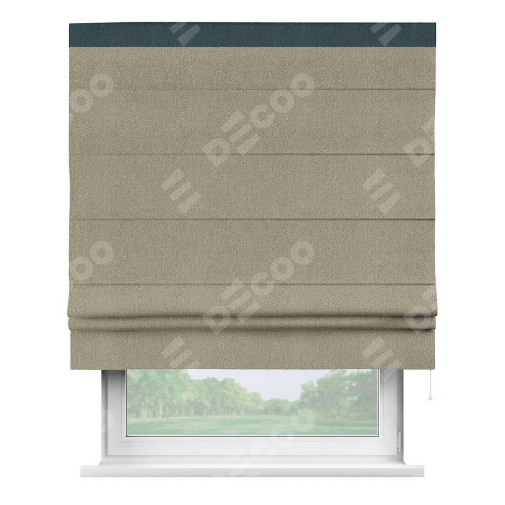 Римская штора производителя «Cortin», используется для проёма, пошита из ткани твид блэкаут кофе, артикул 21575. Отделка шторы кантом «Кинг», ткань для канта используется из твида разной расцветки на выбор. Имеет универсальный механизм и подходит для монтажа: на потолок, на стену и в нишу.