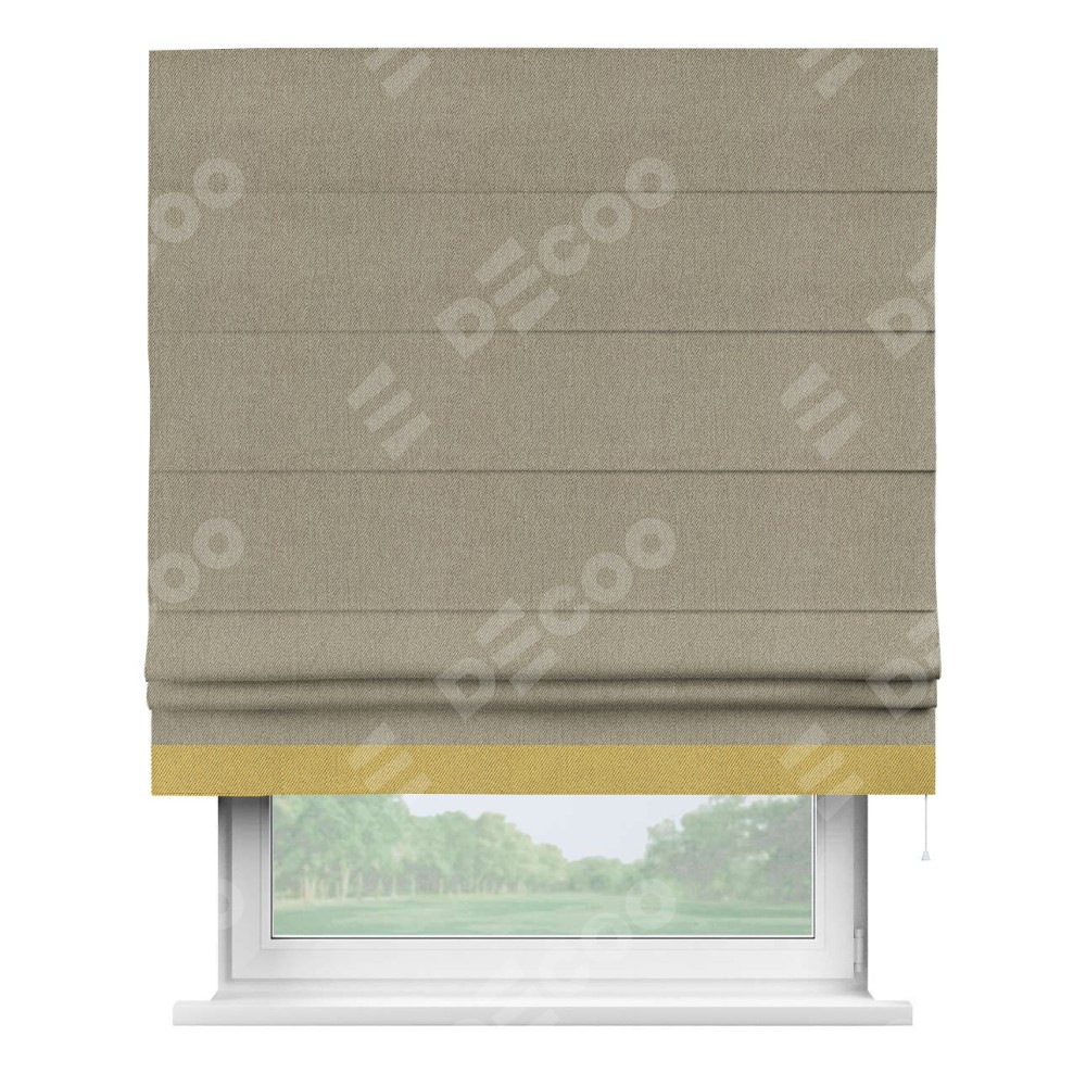Римская штора производителя «Cortin», используется для проёма, пошита из ткани твид блэкаут кофе, артикул 21575. Отделка шторы кантом «Джестер», ткань для канта используется из твида разной расцветки на выбор. Имеет универсальный механизм и подходит для монтажа: на потолок, на стену и в нишу.