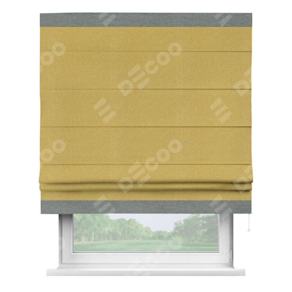 Римская штора «Кортин» с кантом Горизонт, для проема, ткань твид блэкаут, пыльная горчица