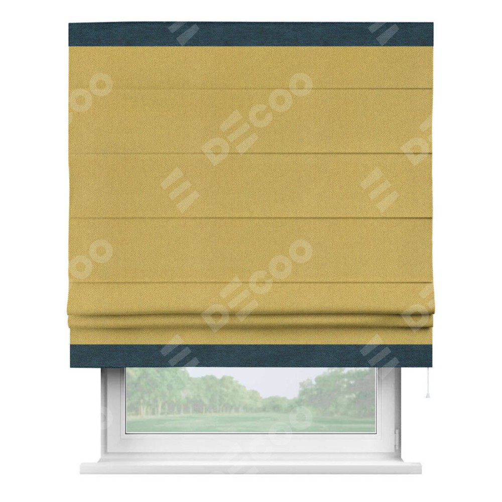 Римская штора производителя «Cortin», используется для проёма, пошита из ткани твид блэкаут пыльная горчица, артикул 21588. Отделка шторы кантом «Горизонт», ткань для канта используется из твида разной расцветки на выбор. Имеет универсальный механизм и подходит для монтажа: на потолок, на стену и в нишу.