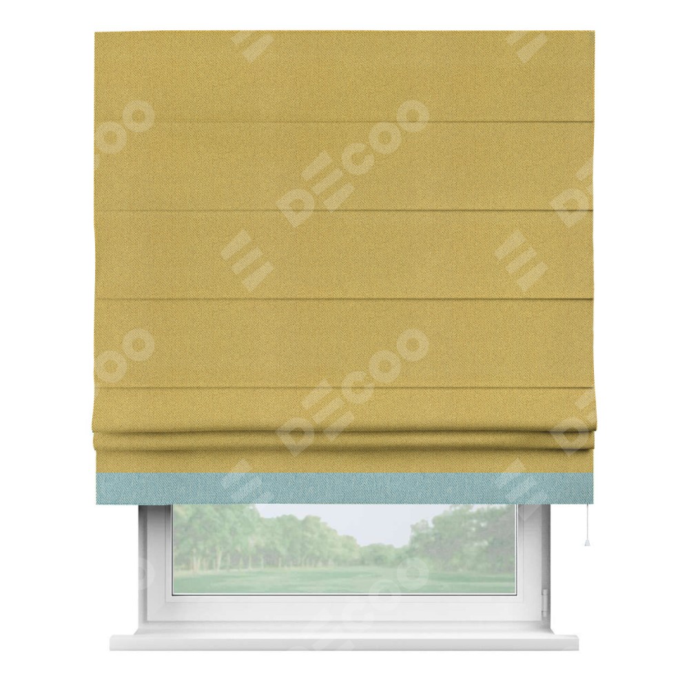 Римская штора производителя «Cortin», используется для проёма, пошита из ткани твид блэкаут пыльная горчица, артикул 21588. Отделка шторы кантом «Джестер», ткань для канта используется из твида разной расцветки на выбор. Имеет универсальный механизм и подходит для монтажа: на потолок, на стену и в нишу.