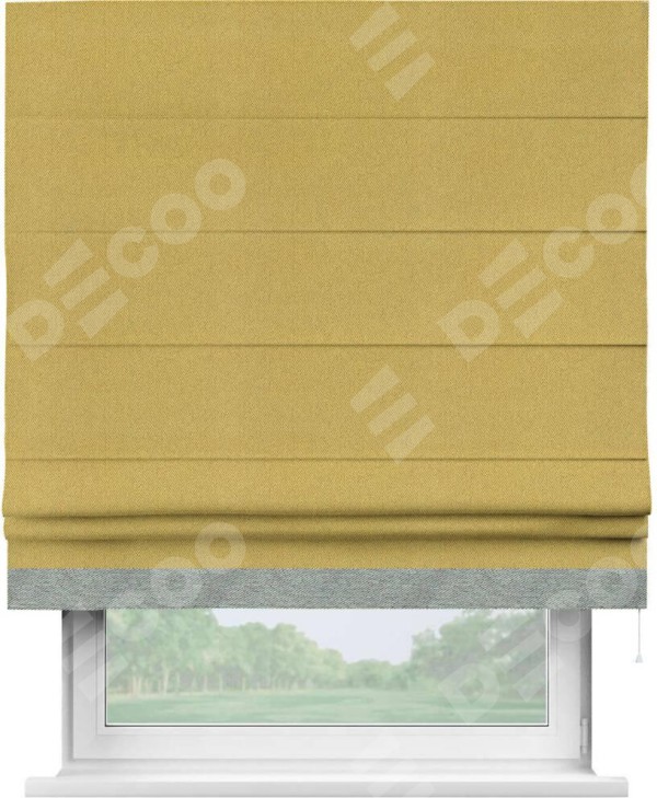 Римская штора «Кортин» с кантом Джестер, для проема, ткань твид блэкаут, пыльная горчица