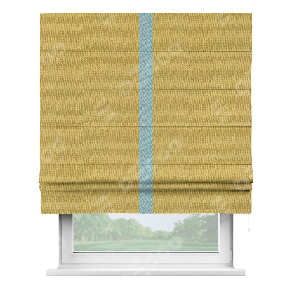 Римская штора производителя «Cortin», используется для проёма, пошита из ткани твид блэкаут пыльная горчица, артикул 21588. Отделка шторы кантом «Хайвэй», ткань для канта используется из твида разной расцветки на выбор. Имеет универсальный механизм и подходит для монтажа: на потолок, на стену и в нишу.