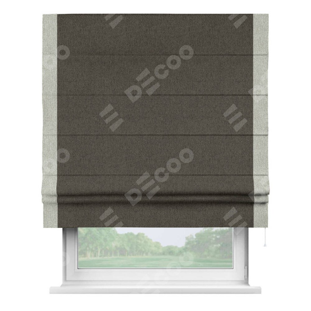 Римская штора «Кортин» с кантом Стрим Дуо, для проема, ткань твид блэкаут, тёмно-коричневый
