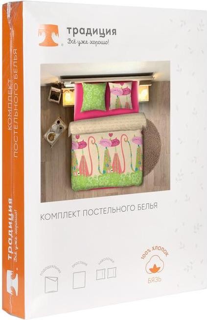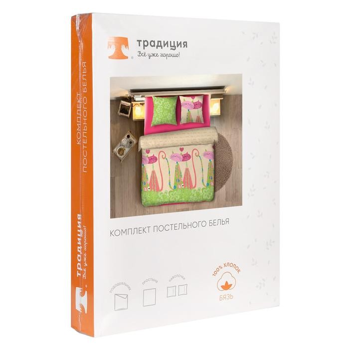 Постельное бельё 1,5сп"Традиция: Кошки», 147×217 см, 150×220 см, 70×70 см — 2 шт