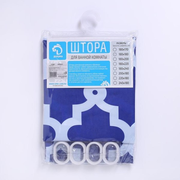 Штора для ванной комнаты Доляна «Марокко», 180×180 см, полиэстер, цвет синий