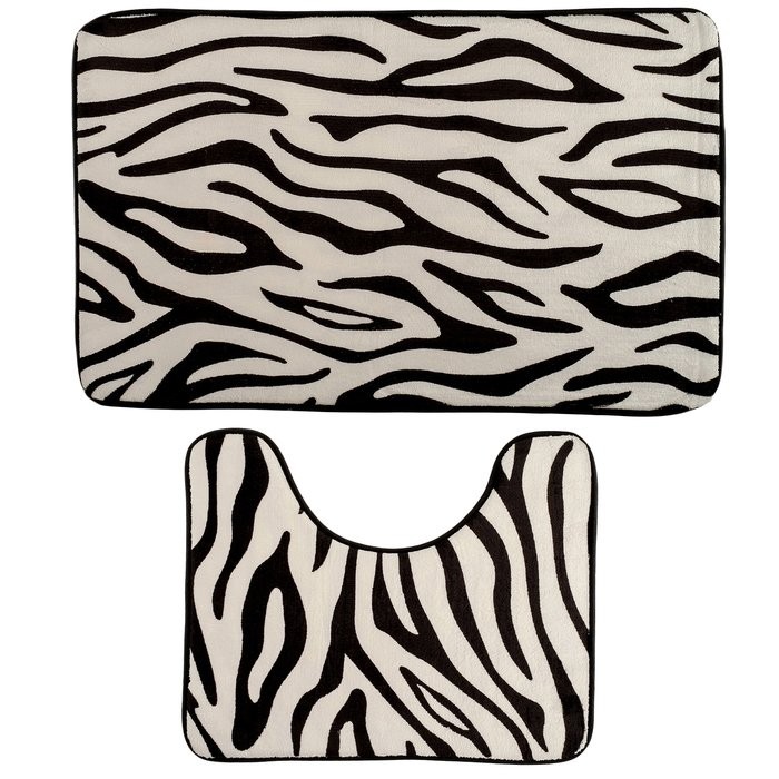 Набор ковриков для ванны и туалета Доляна «Зебра», 2 шт: 40×45, 50×80 см