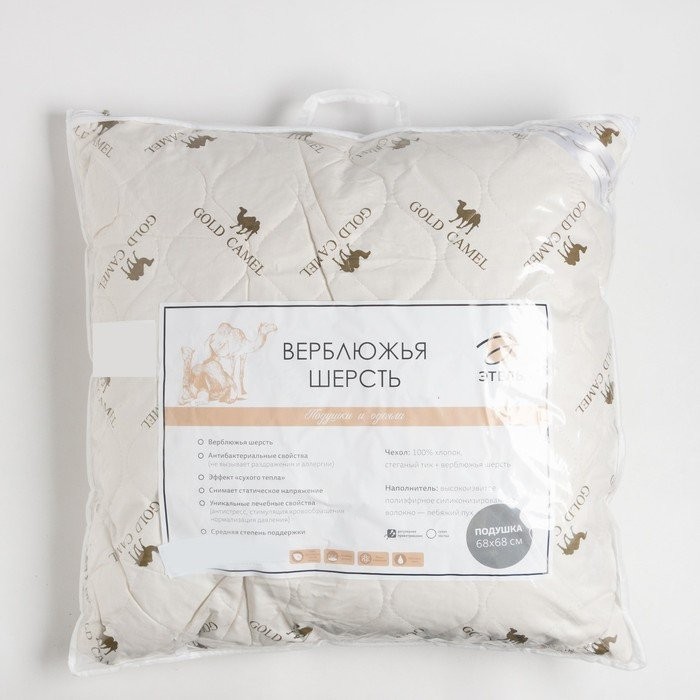 Подушка «Этель», подстёжка — верблюжья шерсть, 70×70 см, тик