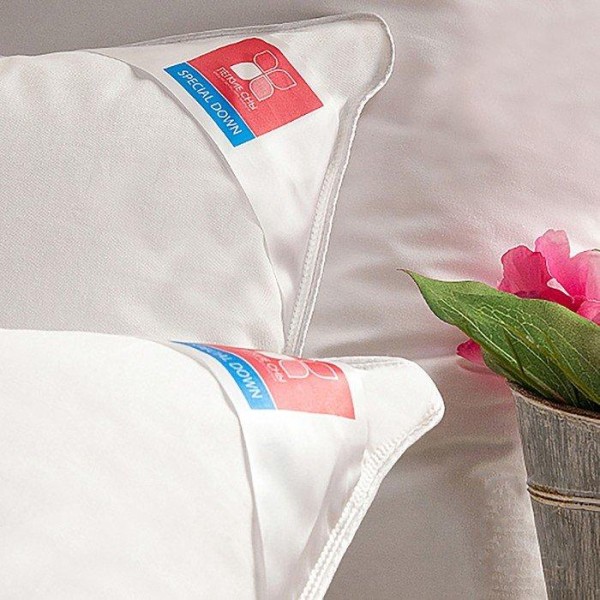 Натуральный гусиный пух и перо первой категории, чехол их прочного пуходержащего твила с белоснежным шёлковым кантом по краям — это всё Подушка «Искушение» 50×70 см, 75−80% гусиный пух, 20−25% гусиное перо, твил 100% хлопок.